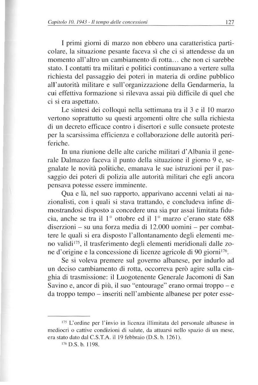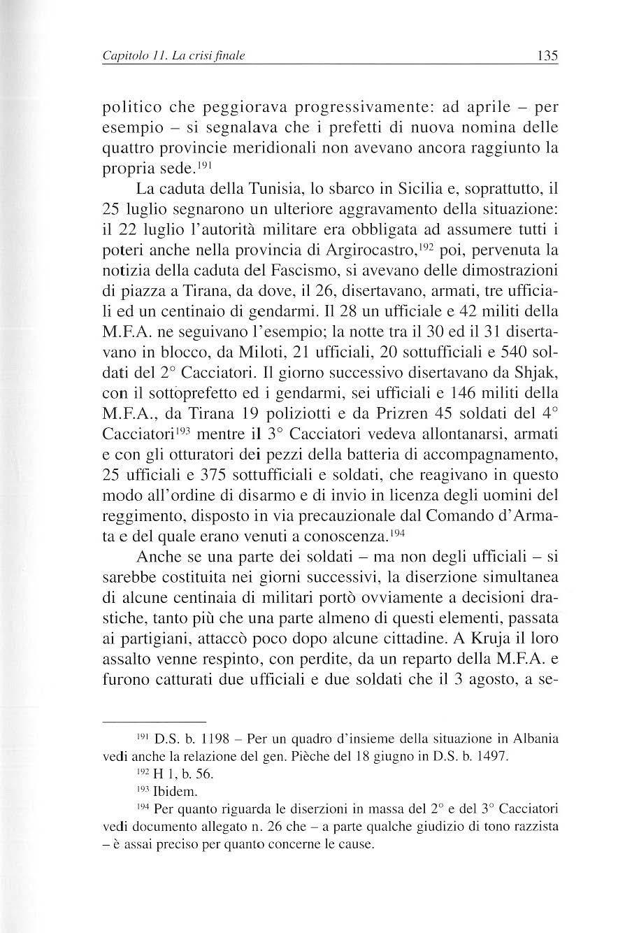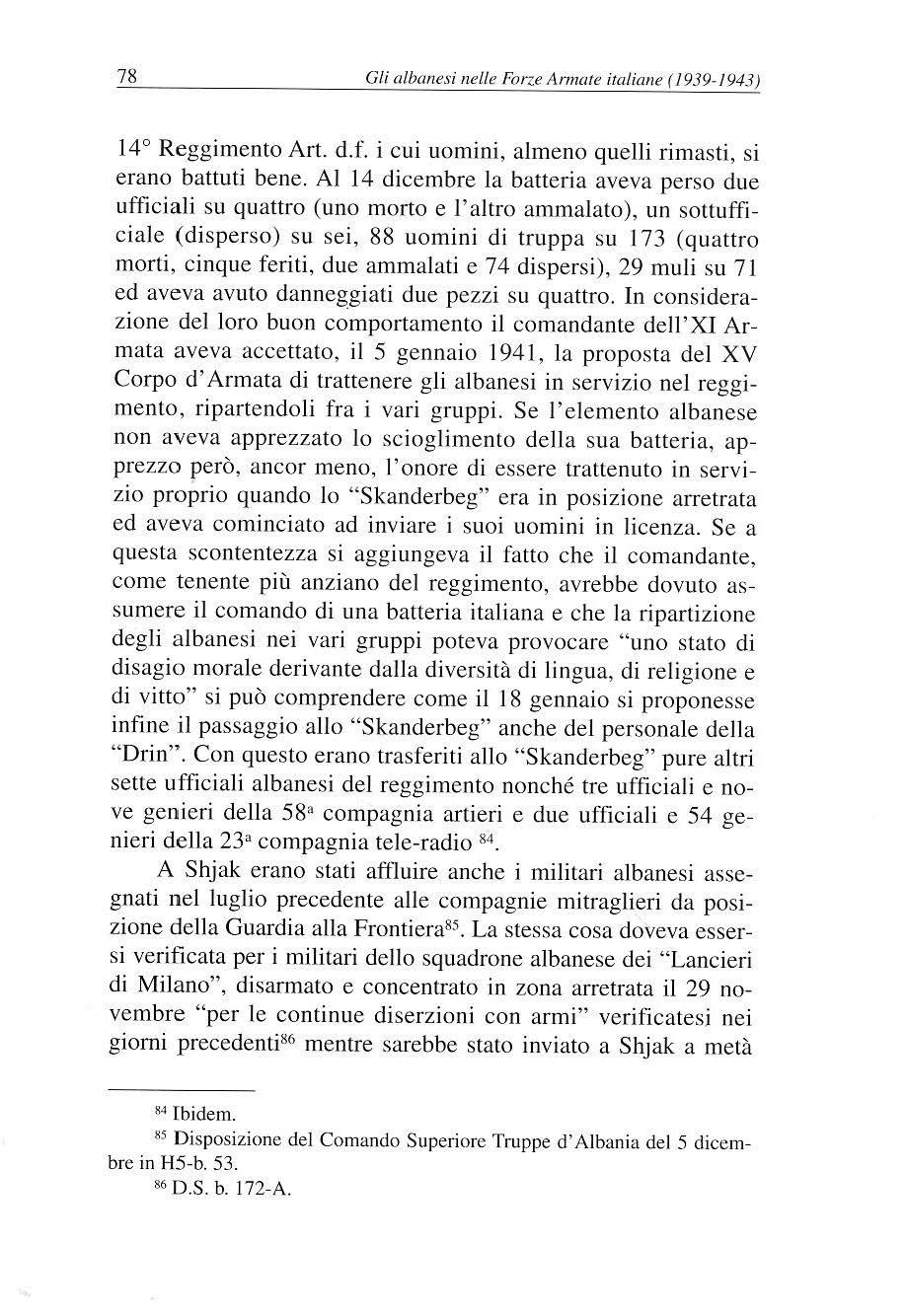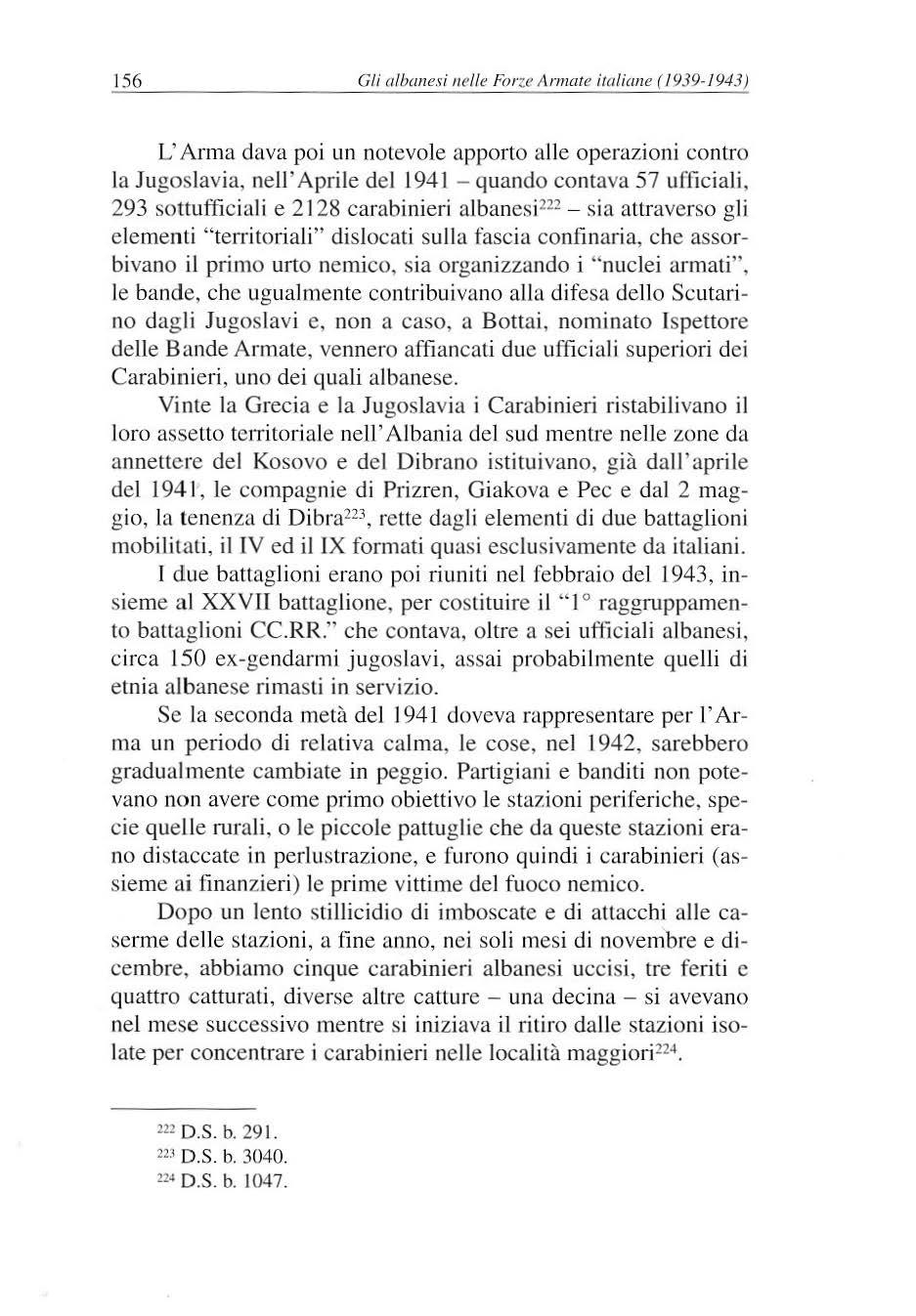 A quelli delle unità indiv.isionate si dovevano poi aggiungere gli ufficiali addetti ai comandi e agli uffici della Difesa Territoriale e gli elementi albanesi dei serviz i e delle unità presidiarie e più precisamente nove ufficiali, sei sottufficiali e 29 graduati e soldati della Direzione di Commissariato, cinque, undici e 109 del Centro Automobilist ico, due, quattordici e l 59 della compag ni a presidia ria cli Tirana , oltre agli elementi della Guardia Reale a Roma , agli allievi ed uffic iali che frequenta vano accademie e scuo le cli applicazione in Ita lia ed agli ufficiali che prestavano servizio in reparti italiani dislocati in A lb ania25 .