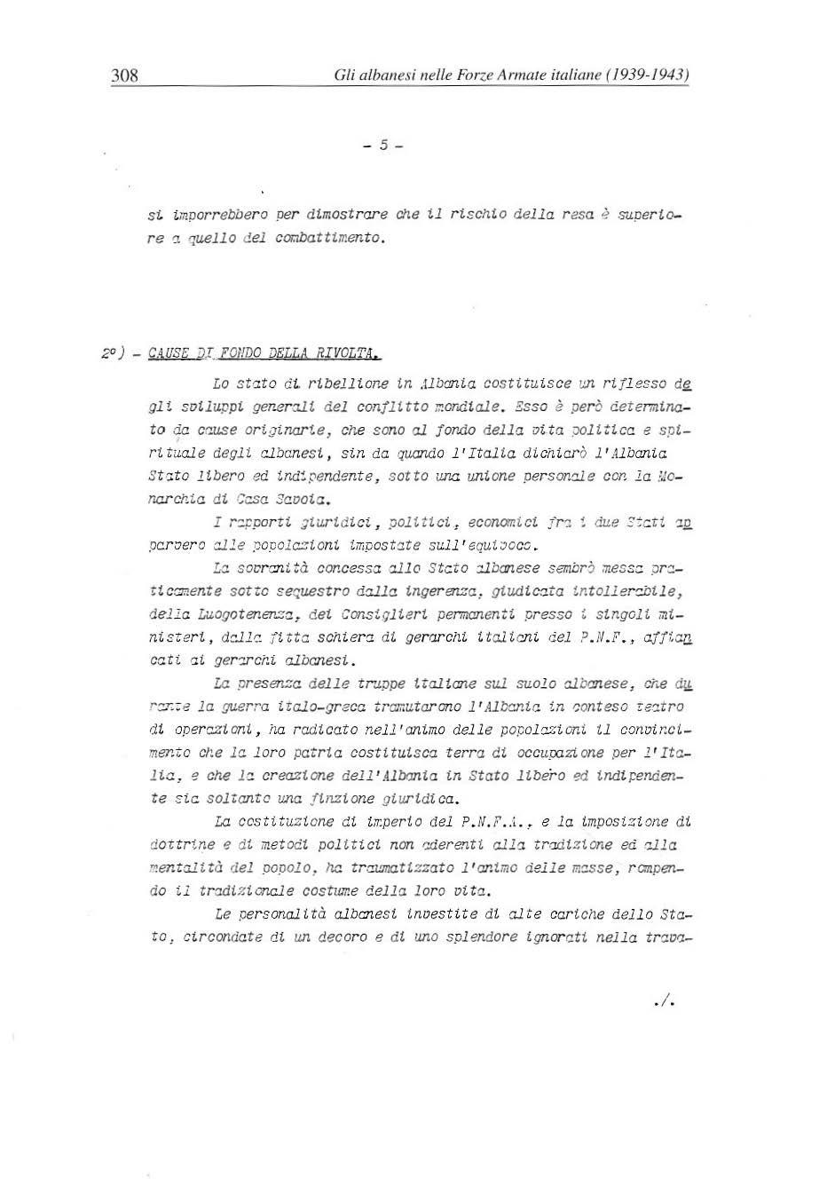 La politica ufficiale italiana, che dava per scontata la piena ed entusiastica accetta z ione della nuova situazione da parte degli Albanesi, minimizzandone le resistenze e sottolineando invece l'apporto econornico profuso per la moderni zza z ione del Paese, non tenne conto che la nuova realtà polilica era soltanto subita dalla classe dirigente albanese che cercava di approfittare delle concessioni e degli .spazi di manovra offerti dall'almeno apparente autonomia del paese. Anche dopo il progressivo peggioramento delle sorti dell'Italia nel corso della Seconda Guerra Mondiale, non si volle sco11fessare questa linea politica, per evitare l'esplicita a,nmissione del fallimento della azione italiana in terra d'Albania .