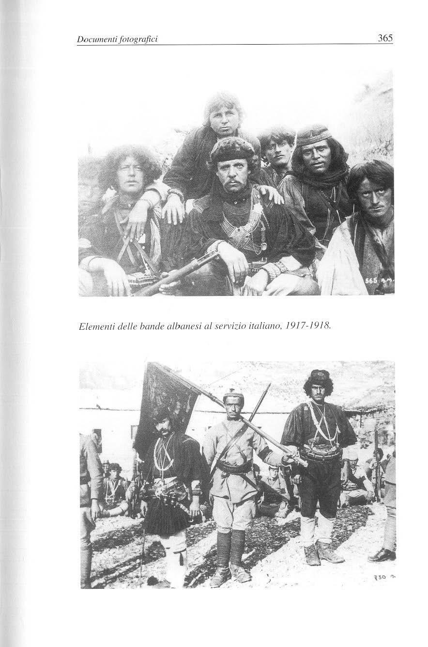 prattutto, come quelle organizzate in Libia appena qualche anno prima. Veniva ingaggiato un capo che portava con sé i gregari che si arruolavano a tempo indeterminato e che, con un mese di preavviso, potevano essere congedati in qualsiasi momento. Ricevevano una paga e, in seguito, ebbero diritto, loro e le loro famiglie , ad un'indennità in caso di fe rite o di morte . Erano destinate alle prote zione dei villaggi non presidiati dalle nostre truppe, a ricognizioni, colpi di mano ed a contrapporsi ad analoghe formazioni arruolate dagli austriaci 4 • Nella seconda metà del 1917 le bande erano riorganizzate , poste alle dipendenze di un "Comando bande", con a capo un ufficiale superiore , e ripartite in quattro gruppi e nove sottogrupp i agli ordini di ufficiali e aspiranti italiani 5 • Dopo aver partecipato più attivamente all'ultima fase della guerra l e bande venivano dislocate nell'Albania meridionale, la loro zona di reclutamento, presso Arg irocastro , e vi ri manevano sino al 1° marzo 1920 quando erano disciolte con una gratifica di due mesi di paga .