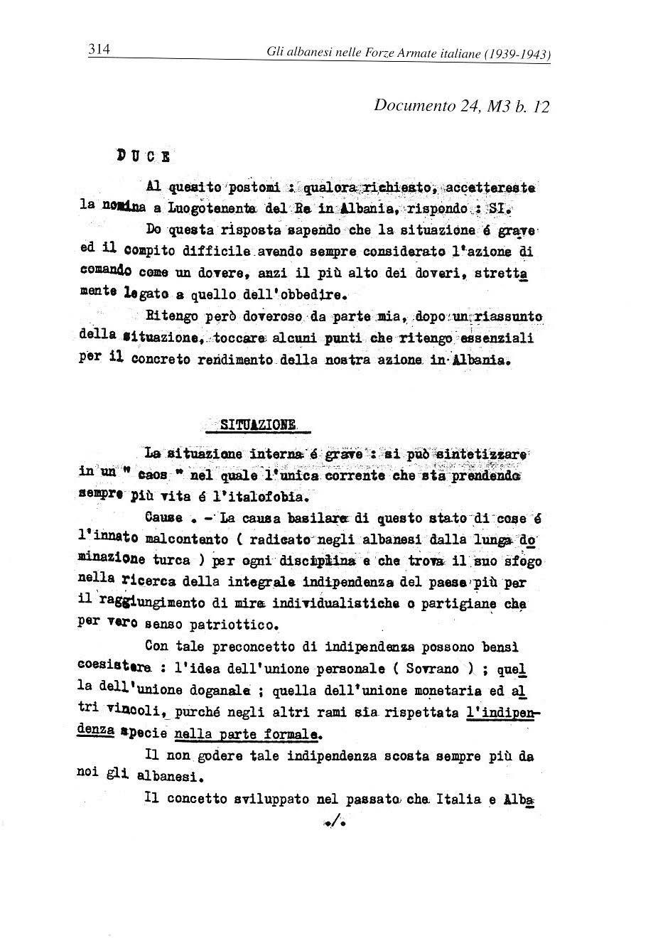 Per quanto riguarda, comunque, tutta questa fase dei rapporti militari italo-albanesi si rinvia il lettore al volume " Le truppe italiane in Albania (anni 1914-20 e 1939)" edito dall'Ufficio Storico nel 1978 .
