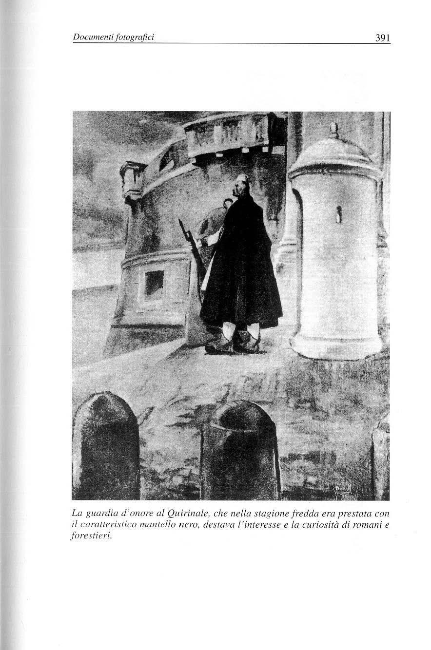 la guardia d'onore al Quirinale, che nella stagione.fredda era prestata con il caratteristico mantello nero, destava l'interesse e la curiosità di romani e .fèJrestieri.