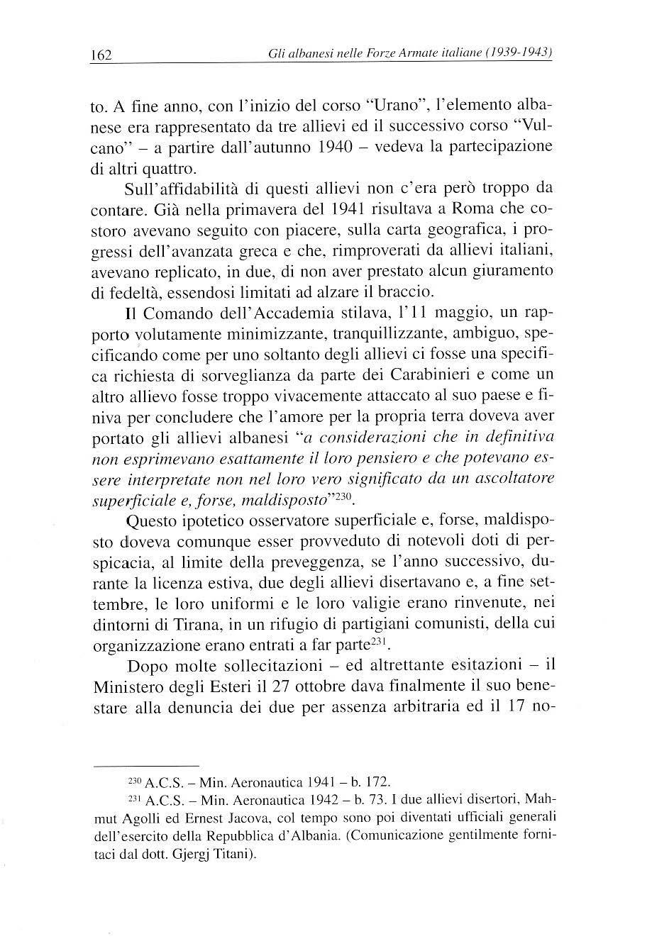 Effetto naturale della collaborazione militare italo- albanese, pur attraverso i suoi alti e bassi, era la frequenza di allievi albanesi presso le nostre scuo le militari. Secondo l'addetto militare a T iran a nel 1938 già 130- 140 allievi avevano frequentato queste scuo le ed altri 180 le s tavano frequentando. La parte del leone spe tta va all'Accade mia di Fanteria e di Cavalleria di Modena che tra il 1926 ed il 1938 vedeva partecipare ai suoi corsi "I 67 allievi albanesi 11 , in parte provenienti dalle scuole militari di Roma, Napoli e Milano che, a volte, organizzavano "corsi special i" per allievi albanesi. Alla "N un ziatella", dalla quale sarebb e stato espulso l'ali ievo Mehmet Shehu, futuro "numero 2 " dell ' Albania com uni sta, nell'anno scolast ic o 19 35 -36 c'erano stat i 60 allievi provenienti dall'Albania e ne l 1936 -37 c 'erano ancora un 2 ° e 3 ° "Corso Albanesi " con comp lessivi 59 frequentatori . Ugualmente dalle scuo le militari prov e nivano una decina di alliev i che, in diversi anni , aveva no seguito i corsi del -