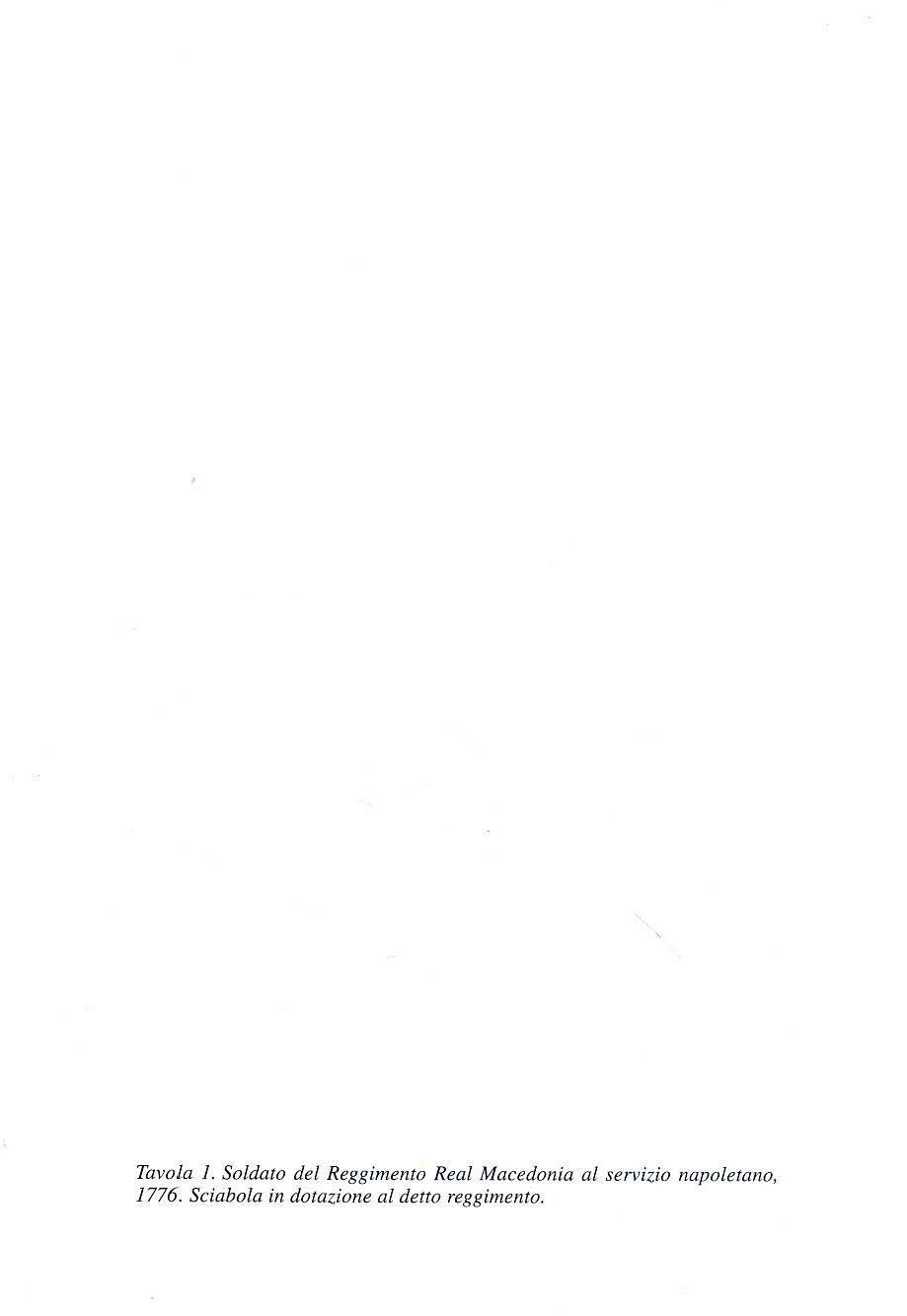 Tavola I. Soldato del Reggimento Real Macedonia al servizio napoletano, I 776. Sciabola in dotazione al detto reggimento.