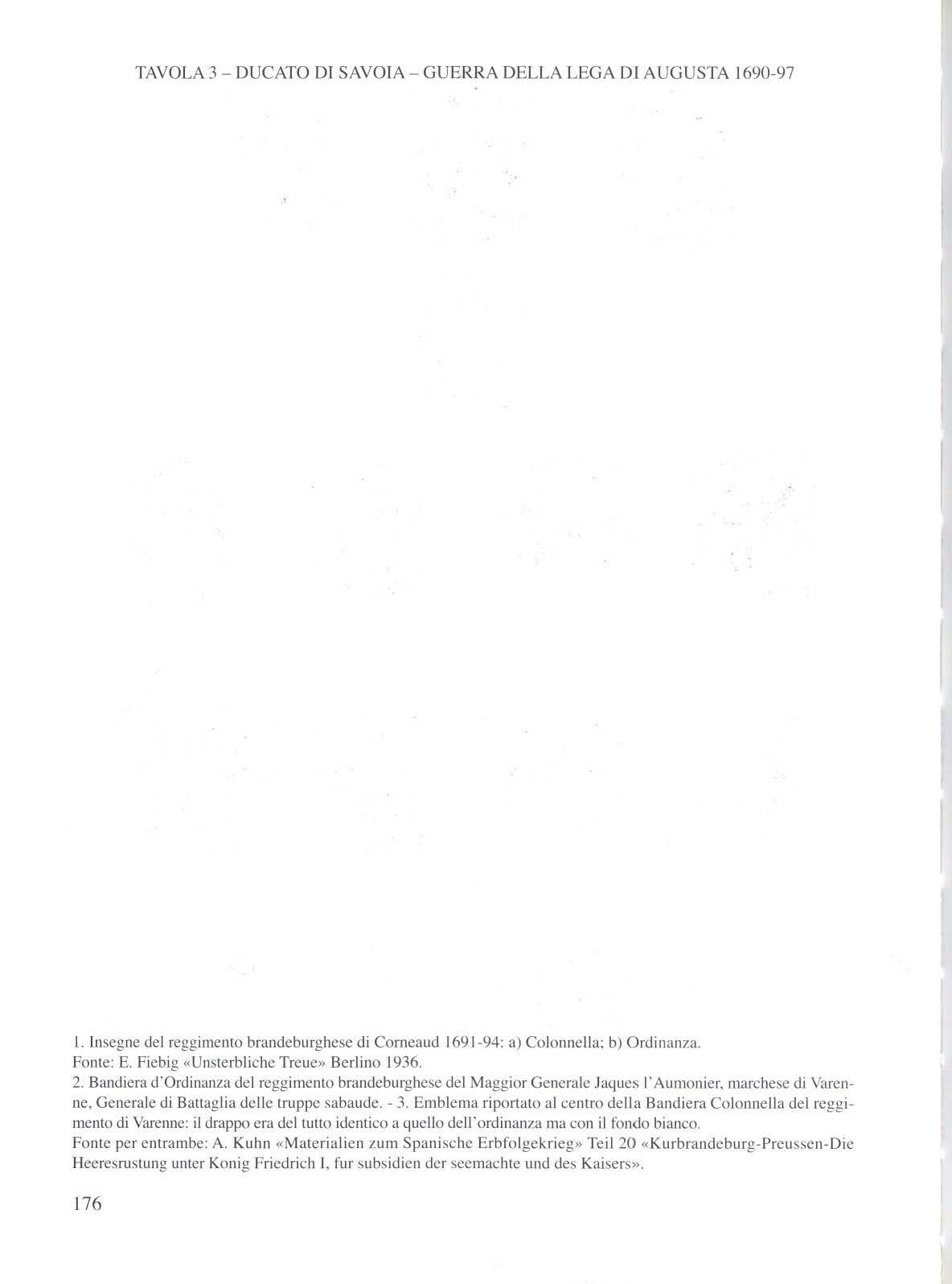 Le insegne in questione sono documentate nell 'opera <<Materialen zum Spanischen Erbfolgekrieg>>, se::.ione 20A « Kurbrandeburg -Preussen, die Heeresrustung unter Konig Fri edrich J,fur Subsidien der Seemachte und des Kaisers»