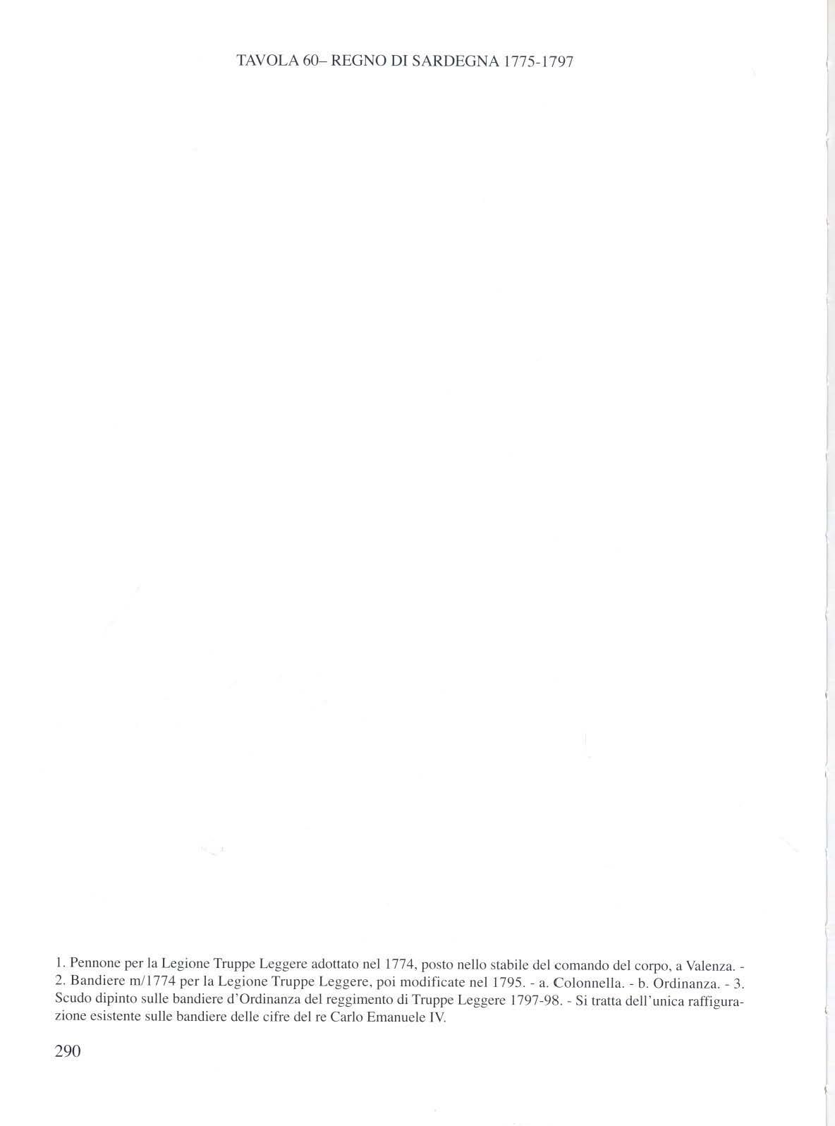 Per sopperire alla citata scarsità di esemplari sopravvissuti fino ai nostri giorni l'autore ha dovuto , quindi, compiere le sue ricerche avvalendosi di quadri, di stampe d'epoca e di documenti d'archivio che, numerosi ed esaurienti per il Re g no di Sardegna e, almeno per il XVIII secolo, per lo Stato Pontificio, sono risultati di difficilissimo reperimento per la totalità degli altri Stati. Sfilano così in queste pagine le bandiere del Piemonte, i cui colori s i rifanno , in gene re , a quelli del ] 'uniforme e che testimoniano , attraverso l'emblema della provincia della quale portano il nome , un profondo attaccamento alla propria terra; quelle della Serenissima Repubblica , sulle quali campeggia orgoglioso il leone di San Marco , quelle con i gigli borbonici di Parma e di Napoli - e su queste ultime, di chiara derivazione spagnola, campeggiano inizialmente i «bas toni di B orgogna».