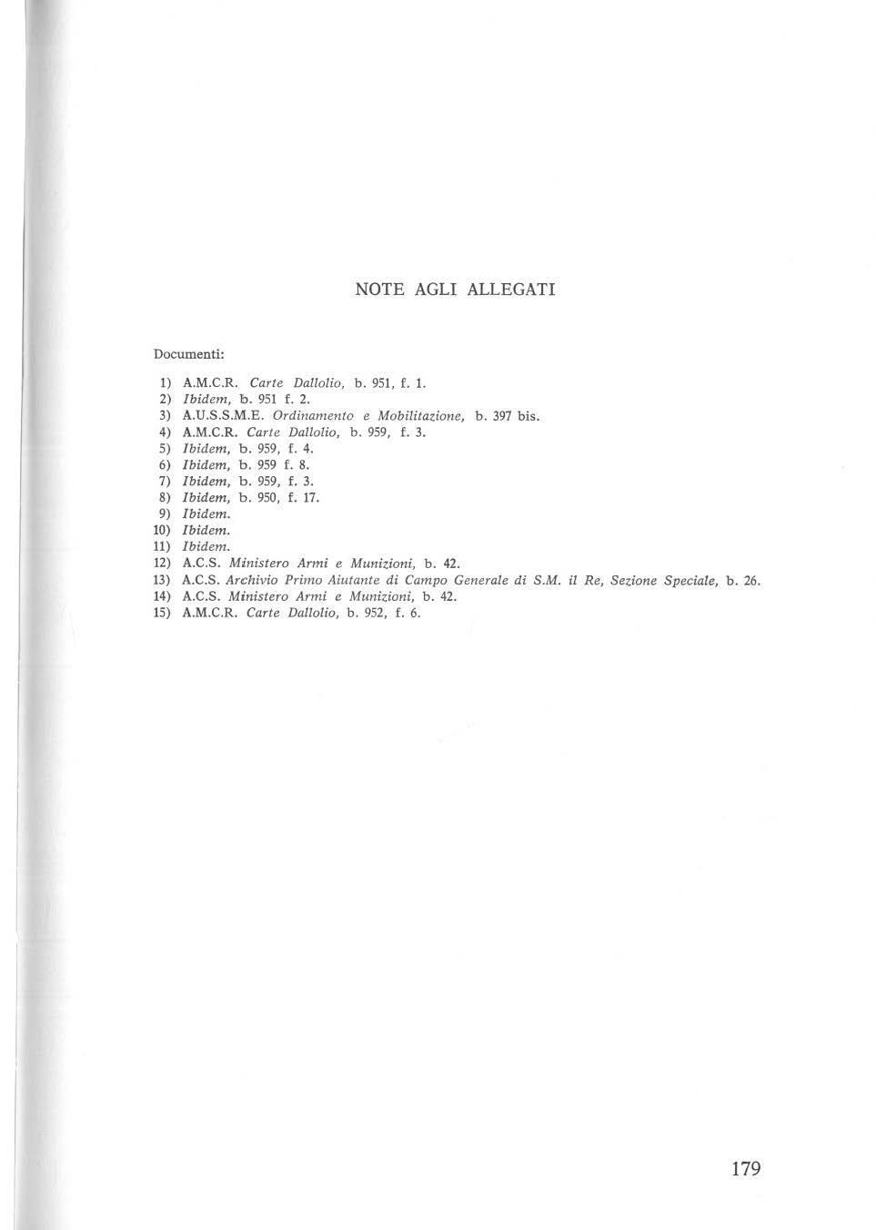 (27) A.M.C.R. Carte Dallolio b. 944 f. 27. Dati sul munizionamento inviati a S.E. Salandra e C. Montù: Storia dell'artiglieria italiana, Roma d.v. voi. X, p. 559.