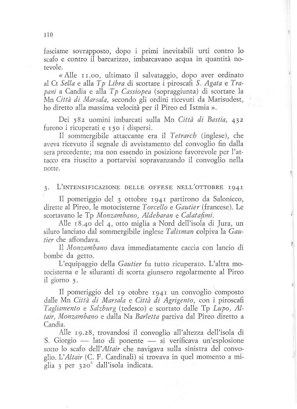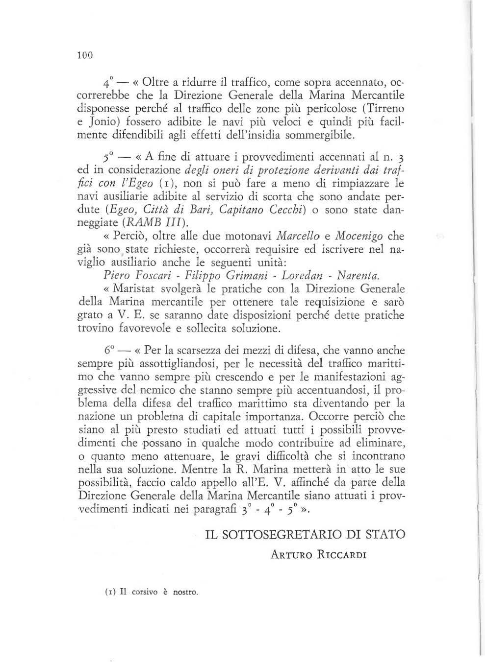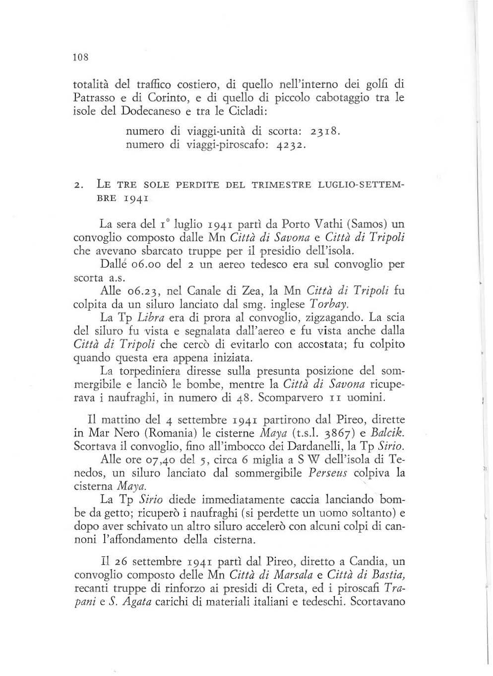 Non vi si può trovare quella frequenza di azioni navali dense di episodi talvolta brillanti e talvolta dolorosi; azioni che hanno più volte determinato scontri tra le maggiori unità delle flotte in contrasto; quella frequenza di azioni, insomma, per la qua/,e la difesa del traffico con l'Africa ha potuto, giustamente e meritatamente, inserirsi nella storia con la denominazione di « battaglia dei convogli».