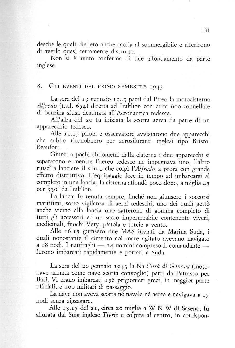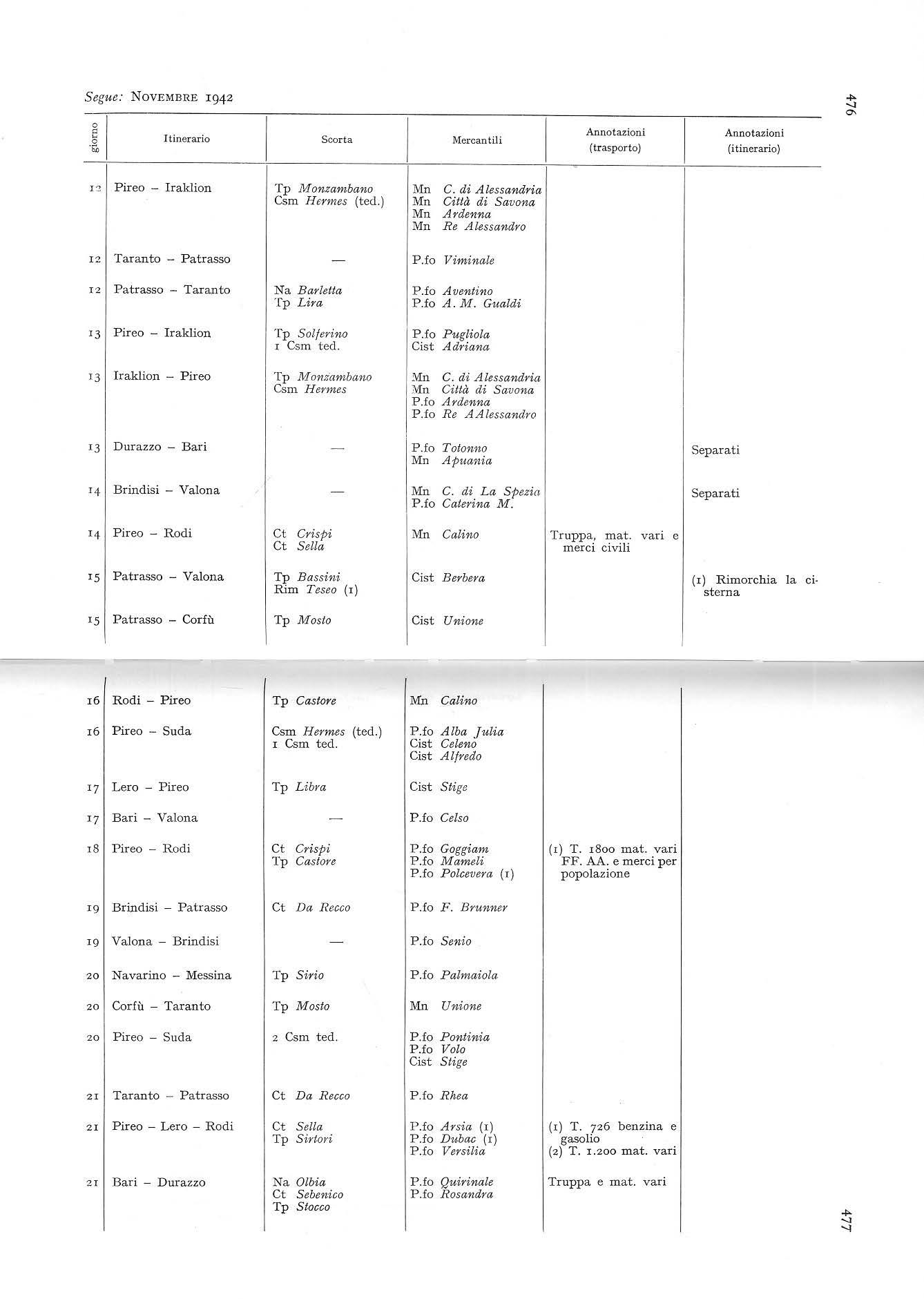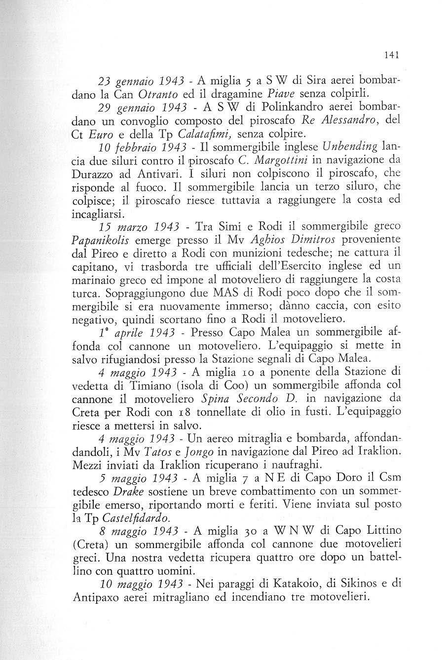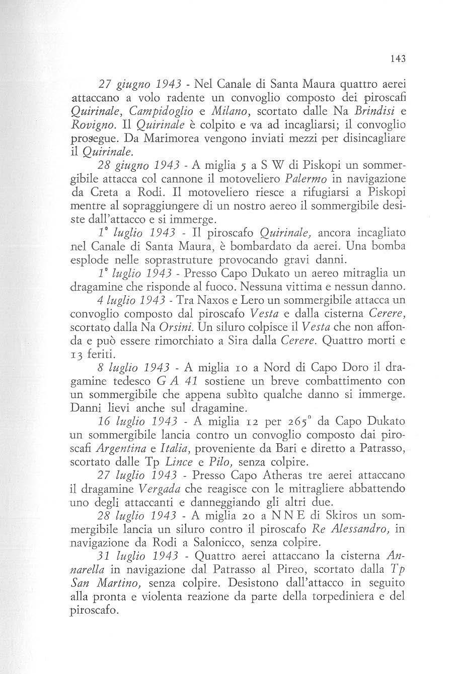 Non vi si può trovare quella frequenza di azioni navali dense di episodi talvolta brillanti e talvolta dolorosi; azioni che hanno più volte determinato scontri tra le maggiori unità delle flotte in contrasto; quella frequenza di azioni, insomma, per la qua/,e la difesa del traffico con l'Africa ha potuto, giustamente e meritatamente, inserirsi nella storia con la denominazione di « battaglia dei convogli».