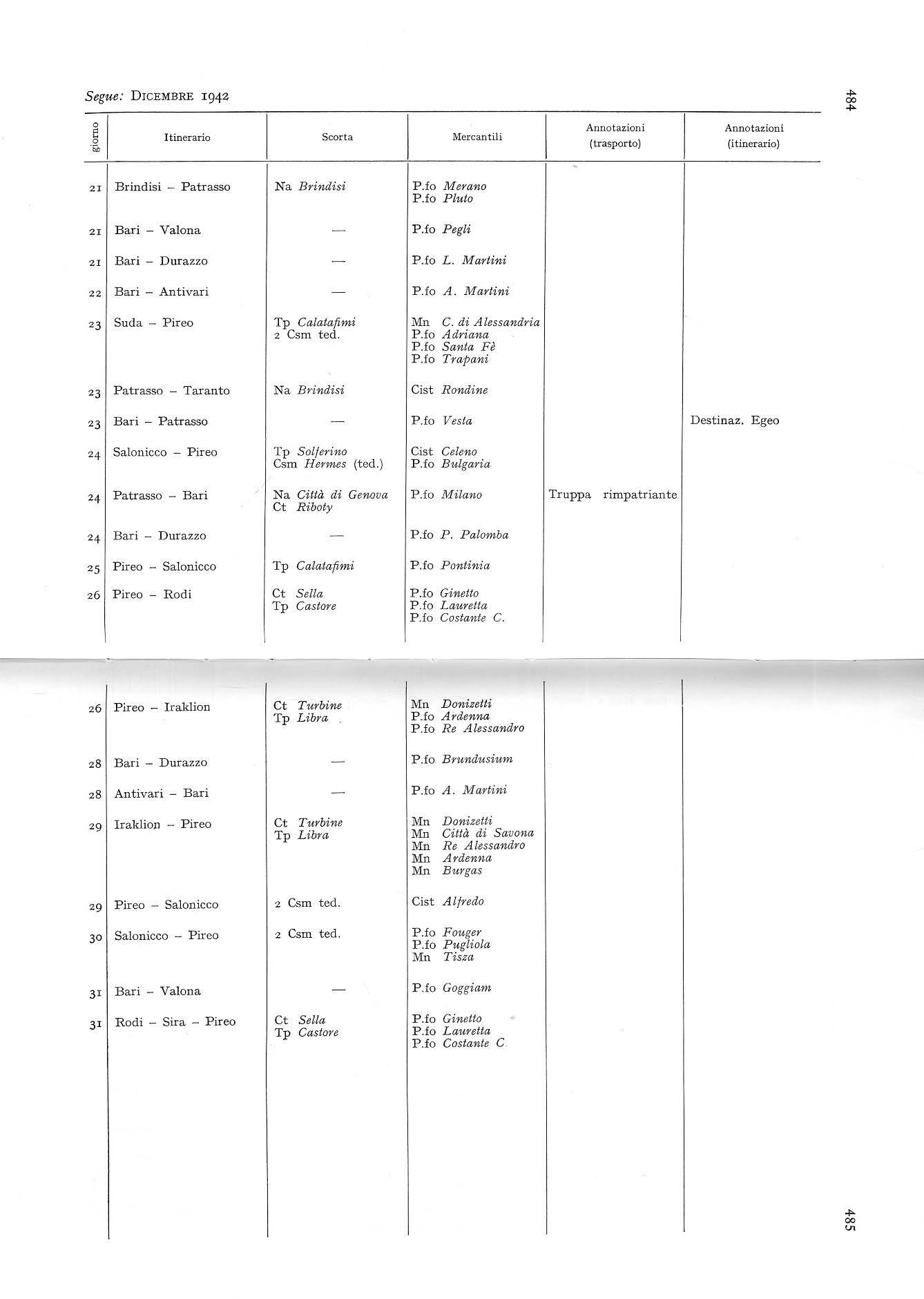 Questo c onfronto c ostitui sce una pre messa c he ab bi a mo ritenuto opportuna per e vitare al l e ttore l 'errata i nte rpre taz ione d ei fatti, c he gli d e riverebbe dalla l e ttura di v ice nde tutte connesse con perdite di unità; essendo ovvio che per i c onvogli partiti e giunti senza incontrare contrasto nemico non c'è nulla da dire. I dati statistici re lativi agli itinera ri ed agli orari di parte nza e a rrivo si trovano negli spe cchi in appendice; per i trasporti più importanti vi sono indicati anche i q uantita tivi di personale e mate riali tras portati .
