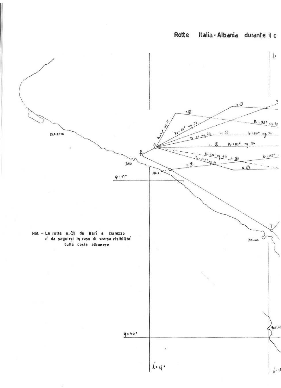 nella parte riguardante le comunicazio ni co n l'Albania, che dovevano essere mantenute in servizio le segue nti linee regolari: postale Brindisi-Durazzo postale Brindisi-Valon a trasporto nafta alba n ese Valona-Bari trasporto minerali albanesi Dura zzo -Bari e altri porti della P enis ola.