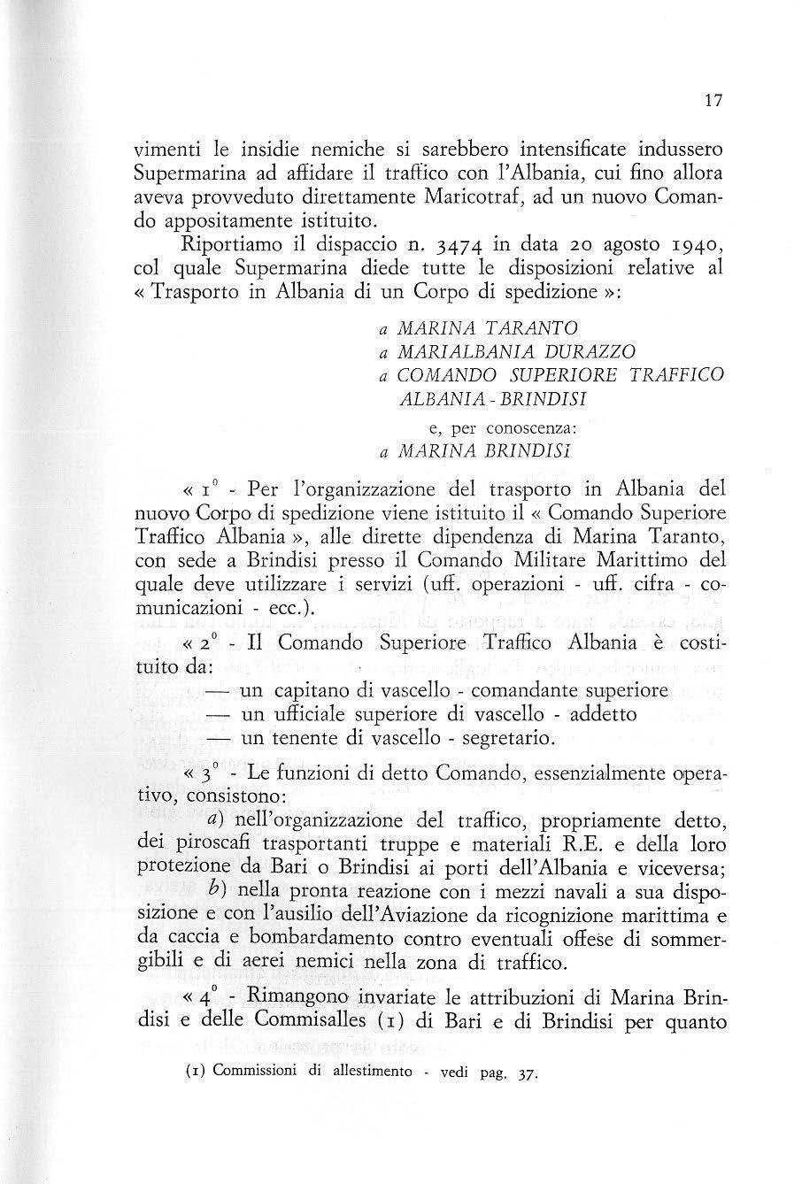 Il 5 settembre fu praticamente la data con la qua1e la decisione di Mussolini di attaccare la Grecia cominciò, nonostante non fosse nota ai nostri Alti Comandi, a pesare notevolmente sull'organizzazione della difesa del traffico nel settore del Basso Adriatico .