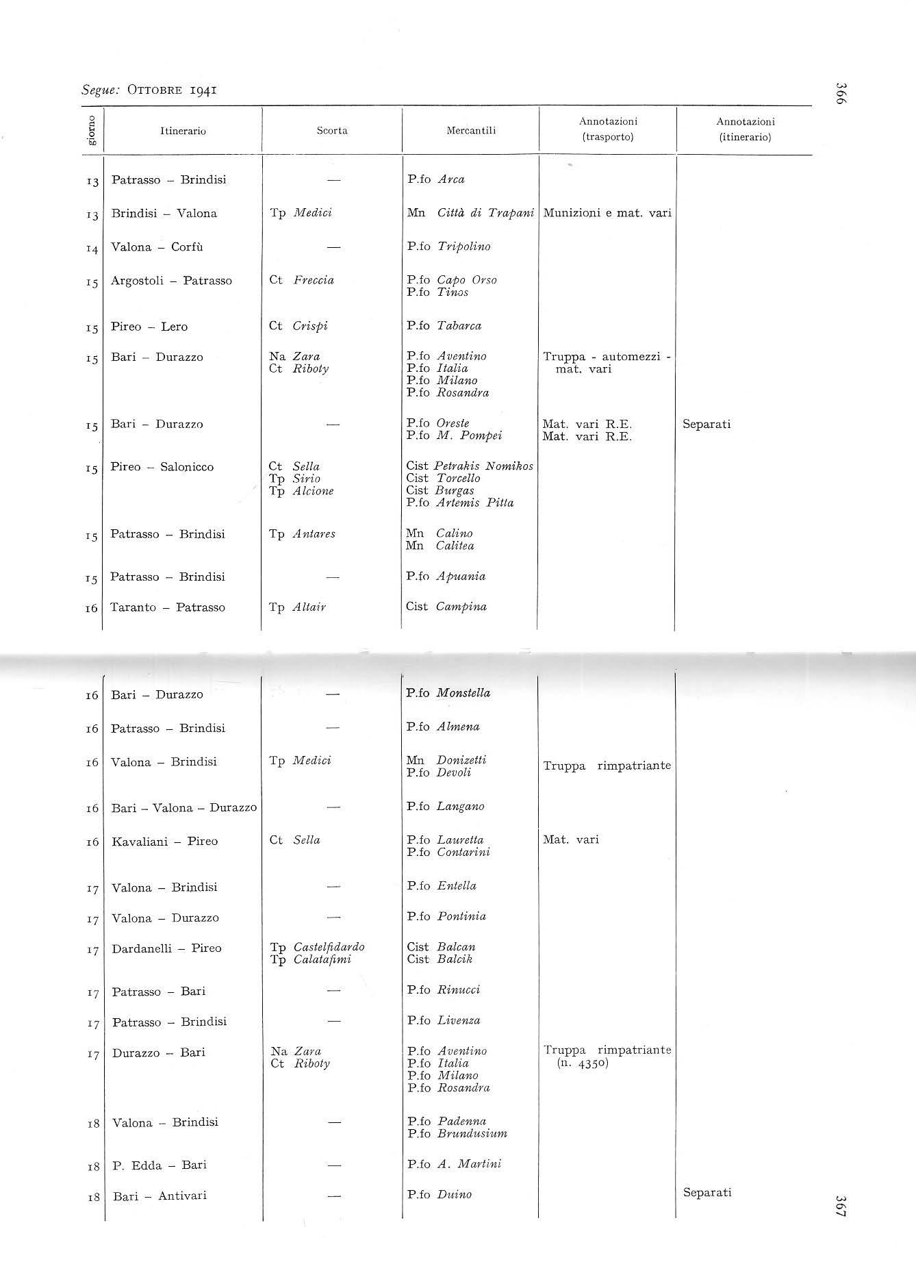 Dell'esiguità delle perdite dobbiamo quasi stupirci particolarmente nei riguardi del periodo del conflitto con la Grecia. L'intensità del traffico durante quel semestre (28 ottobre 1940-30 aprile 1941) superò di gran lunga quella della guerra 1915- 18 , nonostante il contemporaneo impegno nel traffico libico; vi furono anche, come abbiamo già detto, momenti in cui ebbe prevalenza e precedenza di importanza su quello.