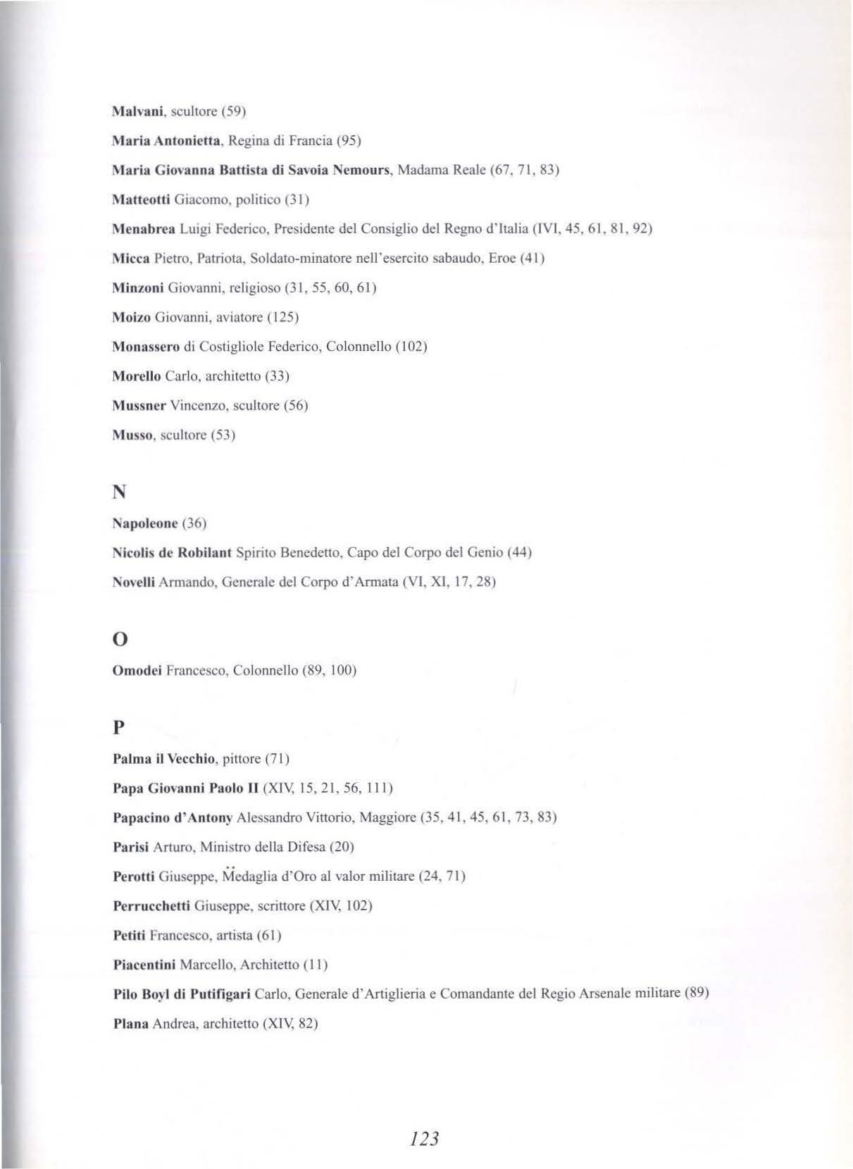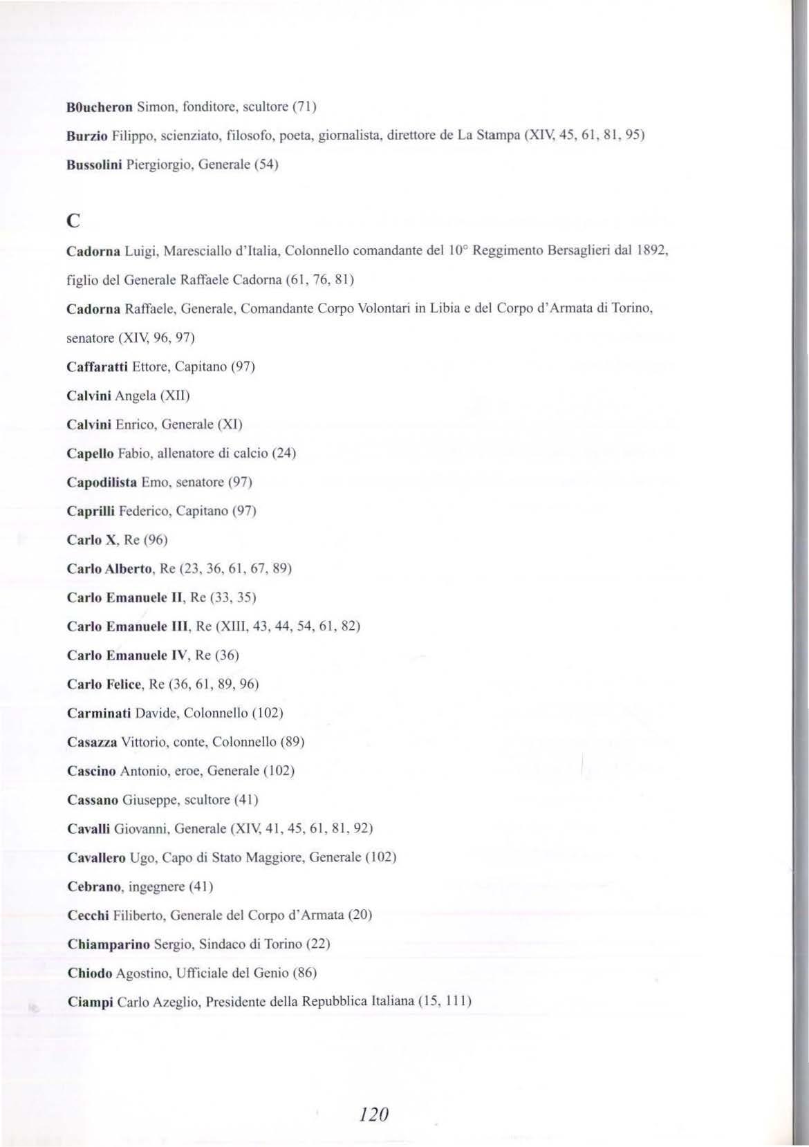 Lamannora, Cadorna, Diaz, Badoglio, il beato Fàa di Bruno, il pioniere dell'aeronautica forlanini e lo scrittore Perrucchetti (ideatore degli alpini).
