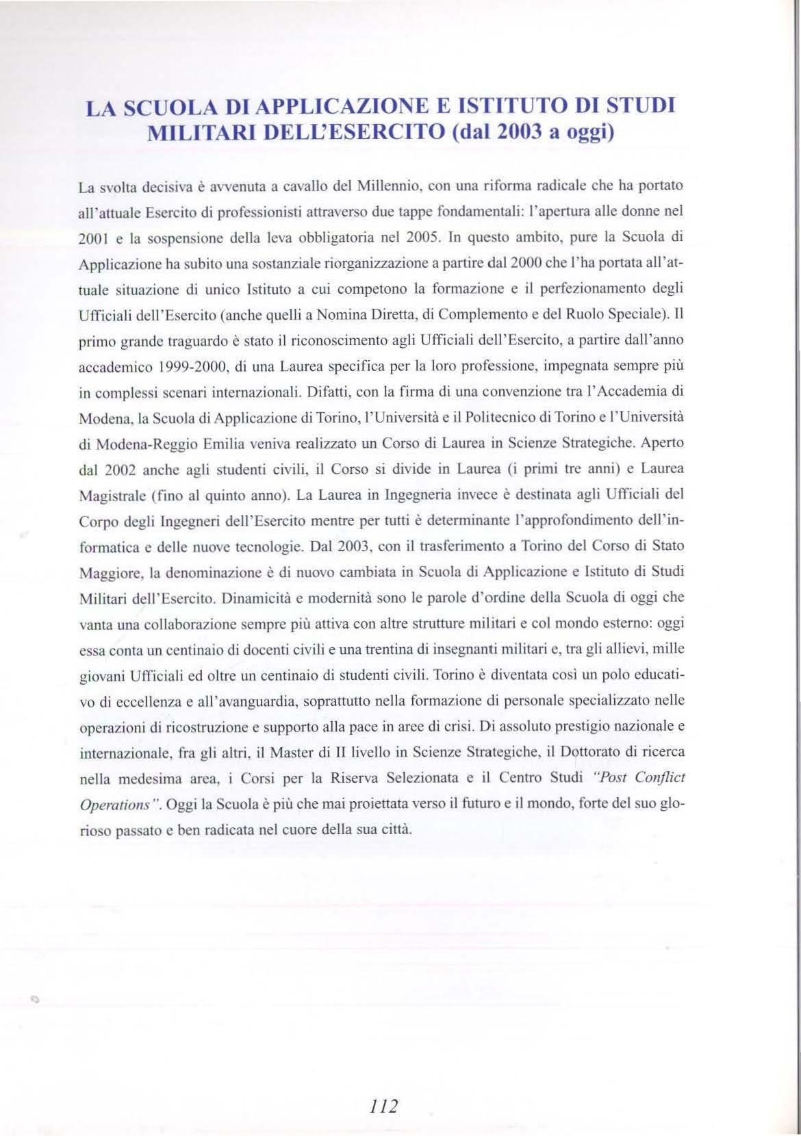 con circa 1300 Ufficiali frequentatori ogni anno, un centinaio di studenti civili, 118 professori universitari e 30 docenti militari che insegnano oltre l 00 materie universitarie e 28 materie militari di carattere tecnico-professionale, la Scuola di Applicazione c Istituto di Studi Militari de Il 'Esercito si è affermata negli ultimi anni come uno dci poli di da trici di eccellenza nel panorama italiano e come un nuovo centro culturale di prestigio per la città di Torino.