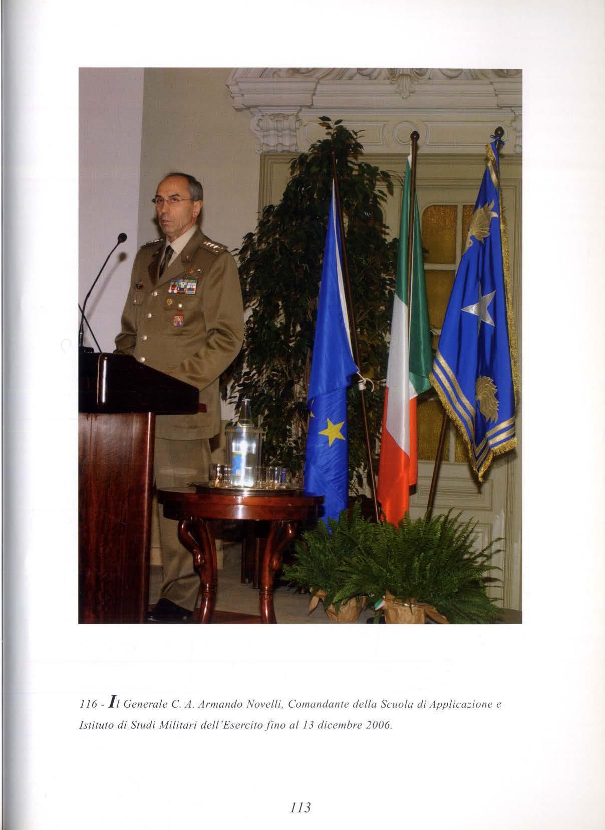 2 -S opra, il Generale C. A. Armando Novelli, Comandante fino al dicembre 2006 della Scuola di Applicazione e Istituto di Studi Militari del! 'Esercito di Torino.