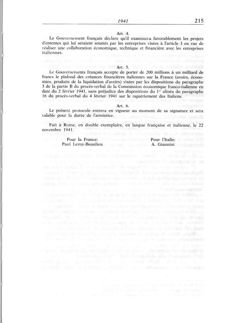P. Guillen, Le,s entreprises industrielles françaises en ltalie pendant la période fasciste, in Studi in memoria di Mario Abrate, Torino, Università degli Studi , Istituto di Storia Economica, 1986; tra i testimoni più attendibili si debbono citare: Amb. L. Noel, Un témoignage : le Diktat de Rethondes et l'armistice franco-italien de Juin 1940, Parigi , Flammarion, 1945; M . Sarraz-Bournet, Témoignage d'un silencieux (Grand Quartier Général - 2° Bureau -TurinVichy), Parigi, Self, 1948; A. Kammerer, La vérité sur l'armistice, Parigi, Médicis, dic. 1944 e 1945.