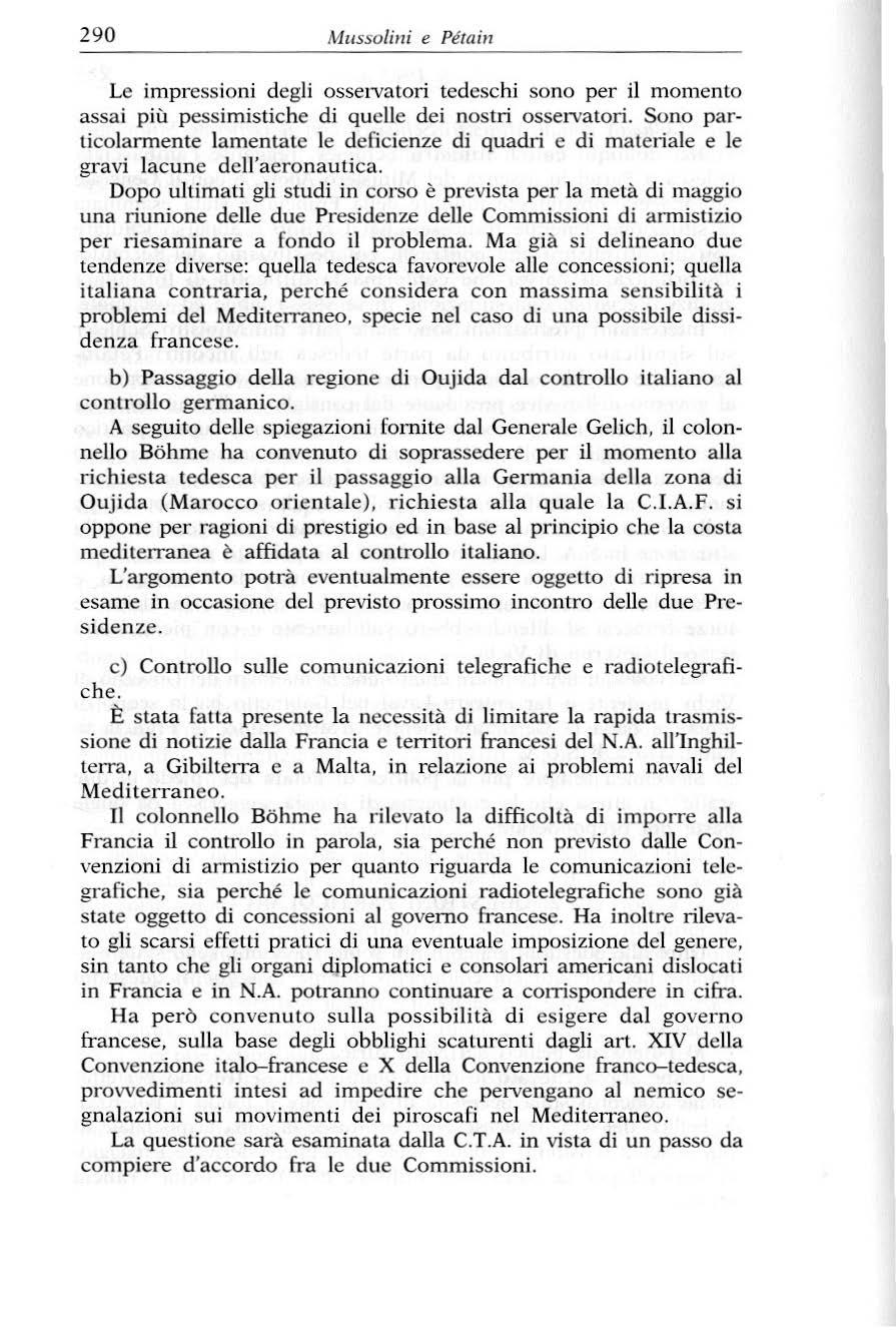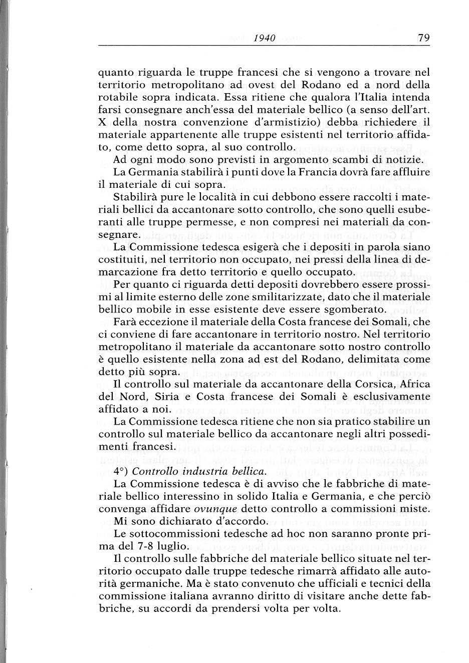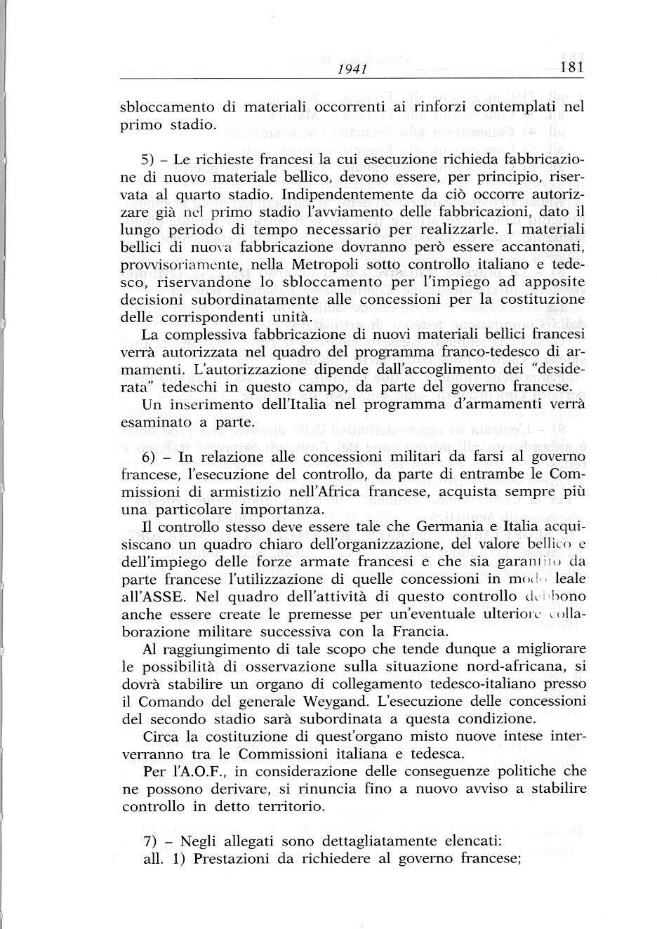 Altri aspetti dell'armistizio sono evocati da: ***L'armistizio con la Francia, in "Relazioni Internazionali", 29 giugno 1940, con il testo dell'armistizio stesso; Quadro dell'ordinamento della CIAF alla data del 5 novembre 1940, Torino, Rattero, ediz. riserv. 1940 ed anni successivi; La sconfitta della Francia, in "Civiltà Fascista", luglio 1940, p. 451; La Francia alla resa dei conti, in "Relazioni In ternazio nali", 22 giugno 1940, p. 849; Mediterraneo: origine e fulcro della guerra, in "Mondo Arabo", n. 1, 29, dic. 1940; R. Cantalupa, La pace euro -africana, in "Annali dell'Africa Italiana" , Min. Africa I taliana, 1941, n 1, p 18.