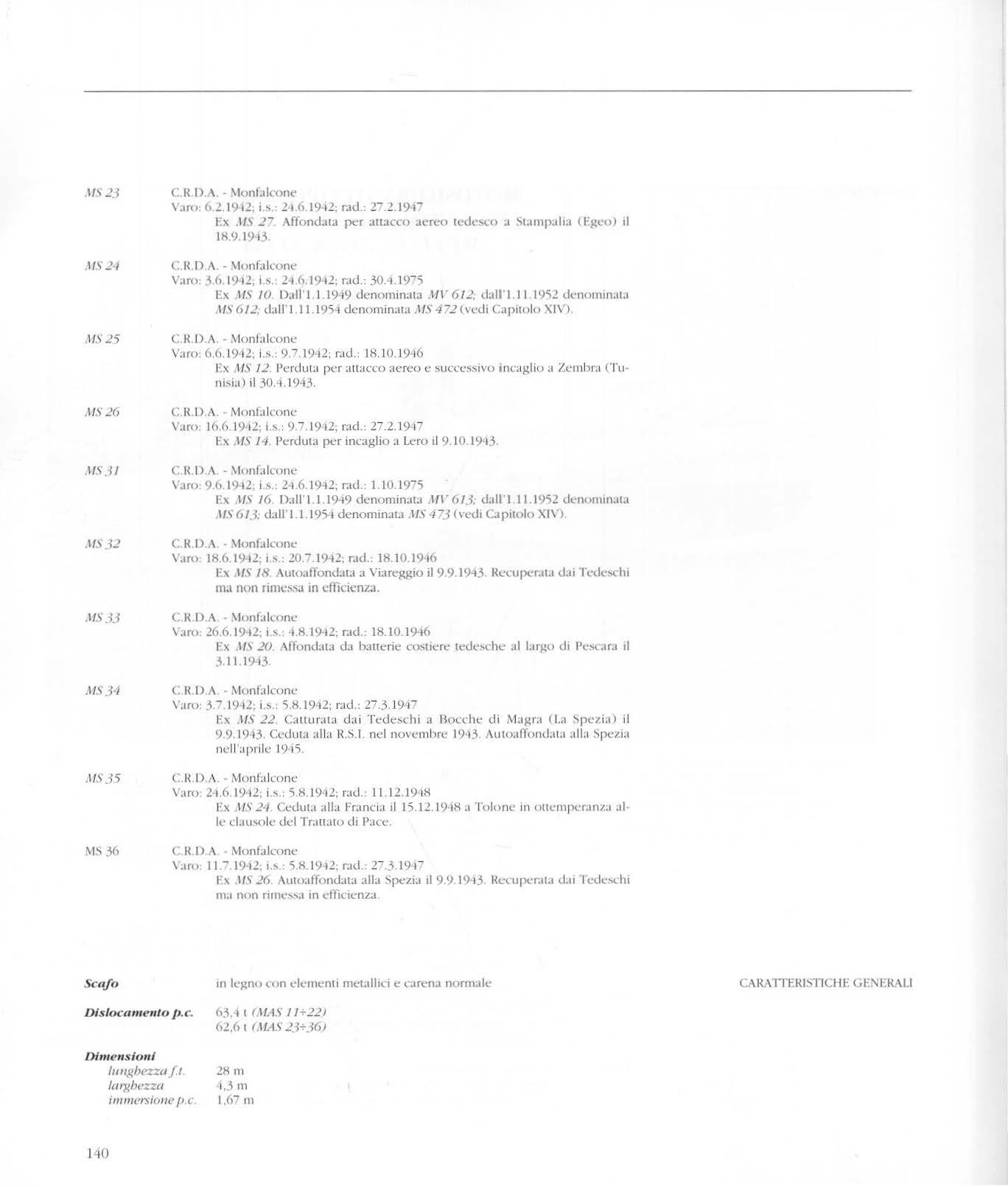 - note: sono riporta t i in sin tesi i p r incipali avven i menti re l ativi alle singole unità, qual i date c circostanze de ll 'affondamento, cess i o n e acl altre m ari ne, cambi el i nominat i vo ccc.