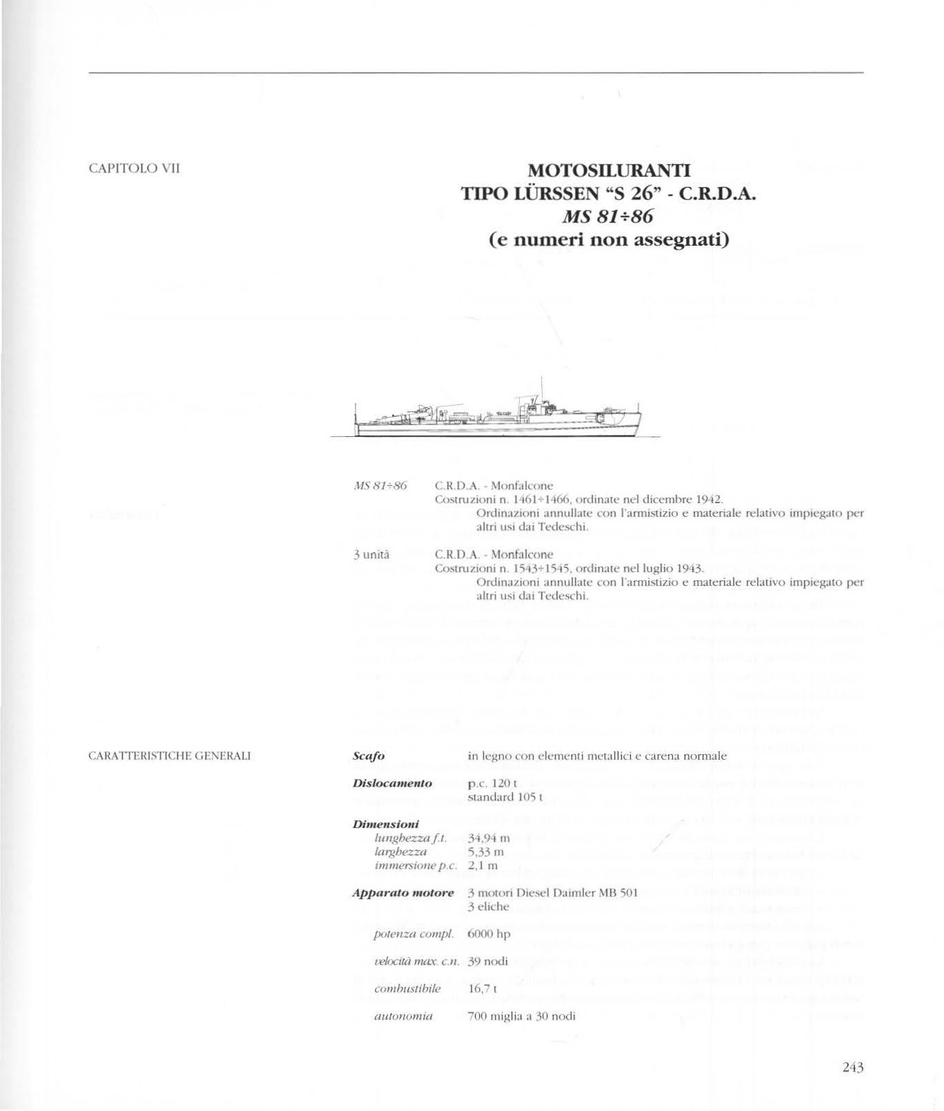 Motosilurant i tipo Lllrs sen ''S 26' ' - C.R.D.A. MS 81786 (p iù numeri non assegnati) ....................... .