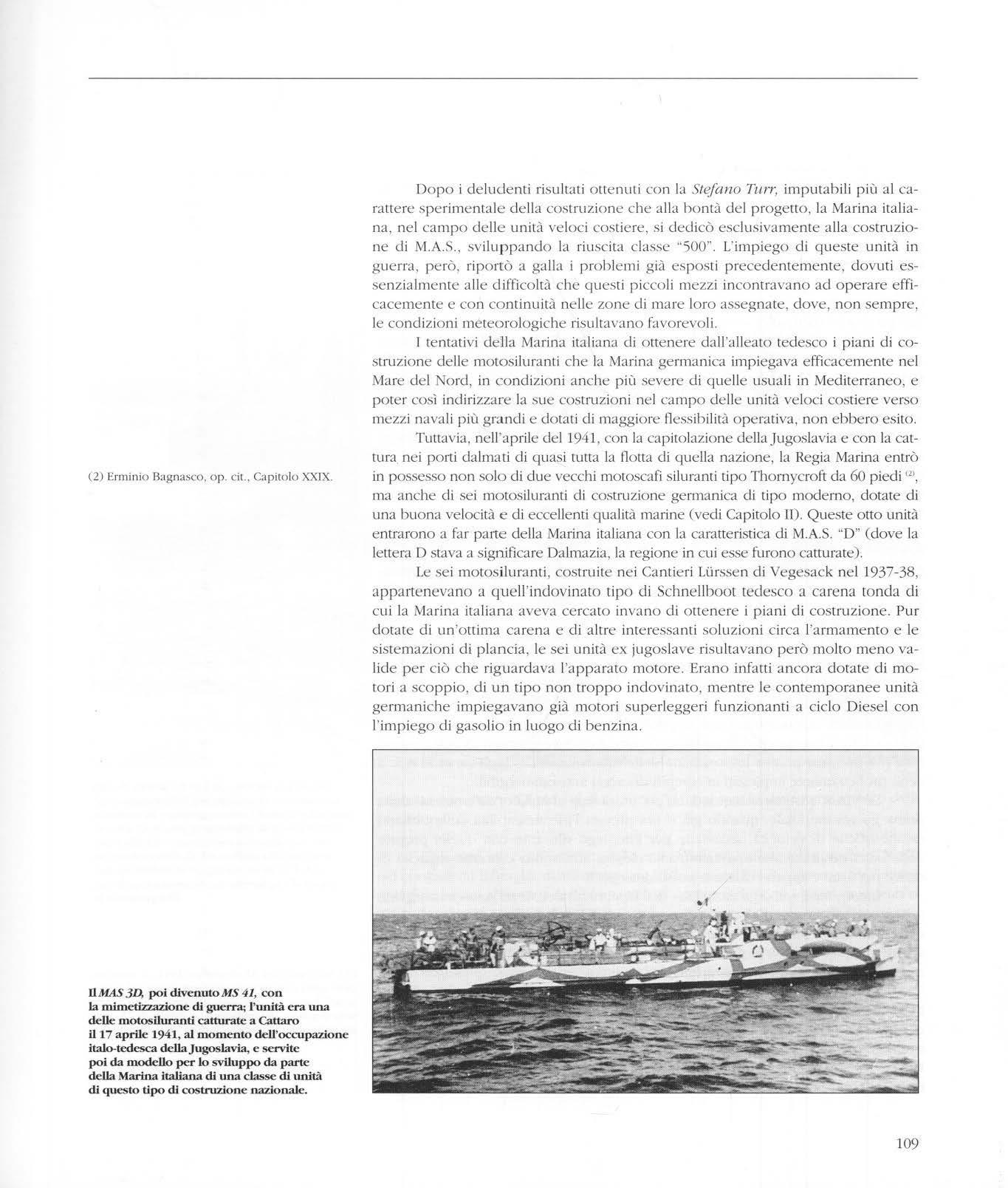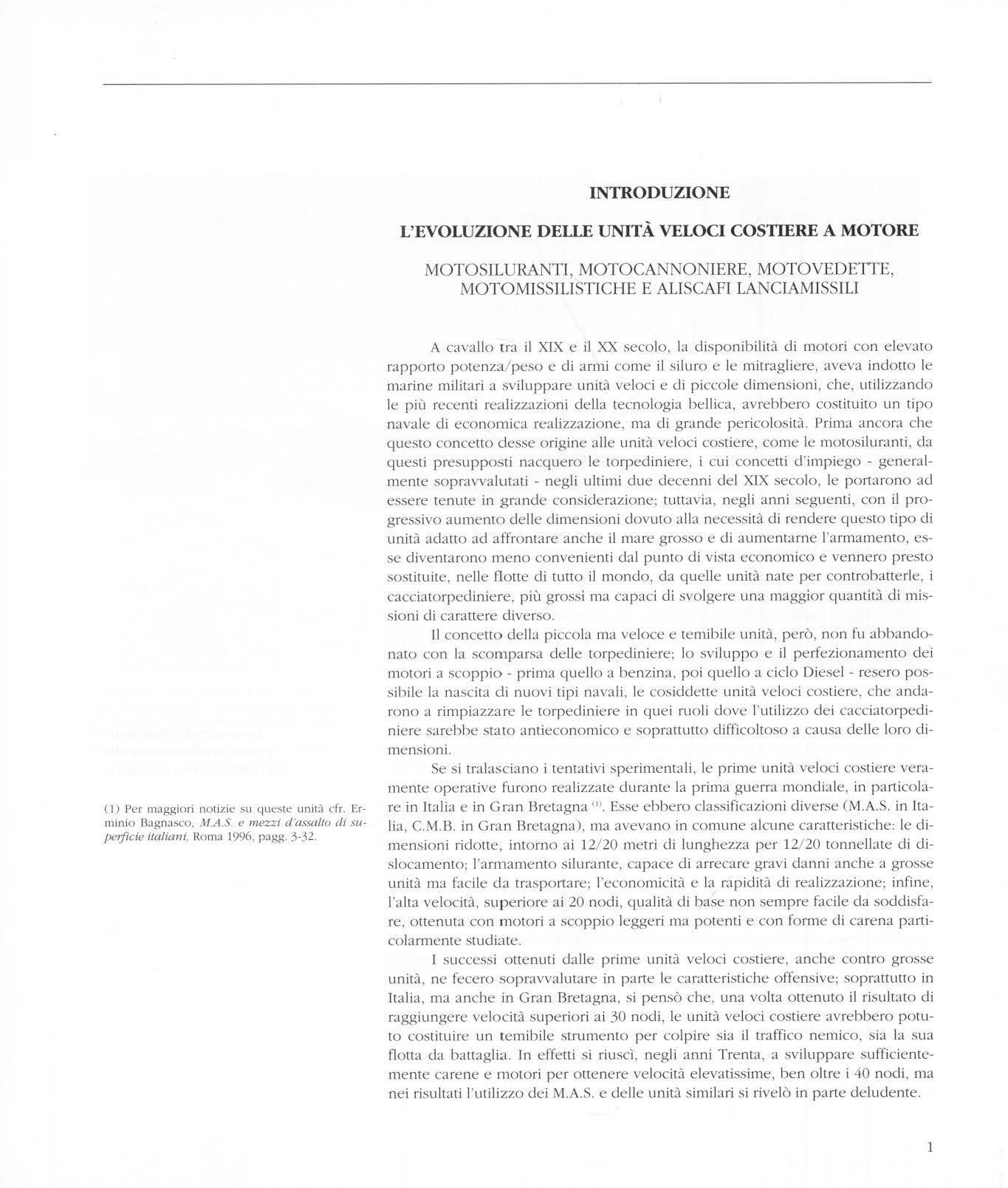 Questo volume è la nuova edizione di un'opera di ben 660 pagine pubblicata nel 1967 in P edizione. e nel 1969 in 2·' edizione aggiornata. Allora comprendeva sono il titol o ( c le Motosiluranti italiane ", mne le unità veloci costiere: Anti Sommergibili (M.A.S.), Motosiluranti Veclerre Ami Sommergibili (V.A.S.), Motocannonierc (.\1C). Inoltre vi erano descritti i mezzi d'assalto di superficie, che dei M.A.S. erano uno speciale sviluppo: i M.A.S. i Motoscafi e:-.plosivi e i Motoscafi si l uranti.