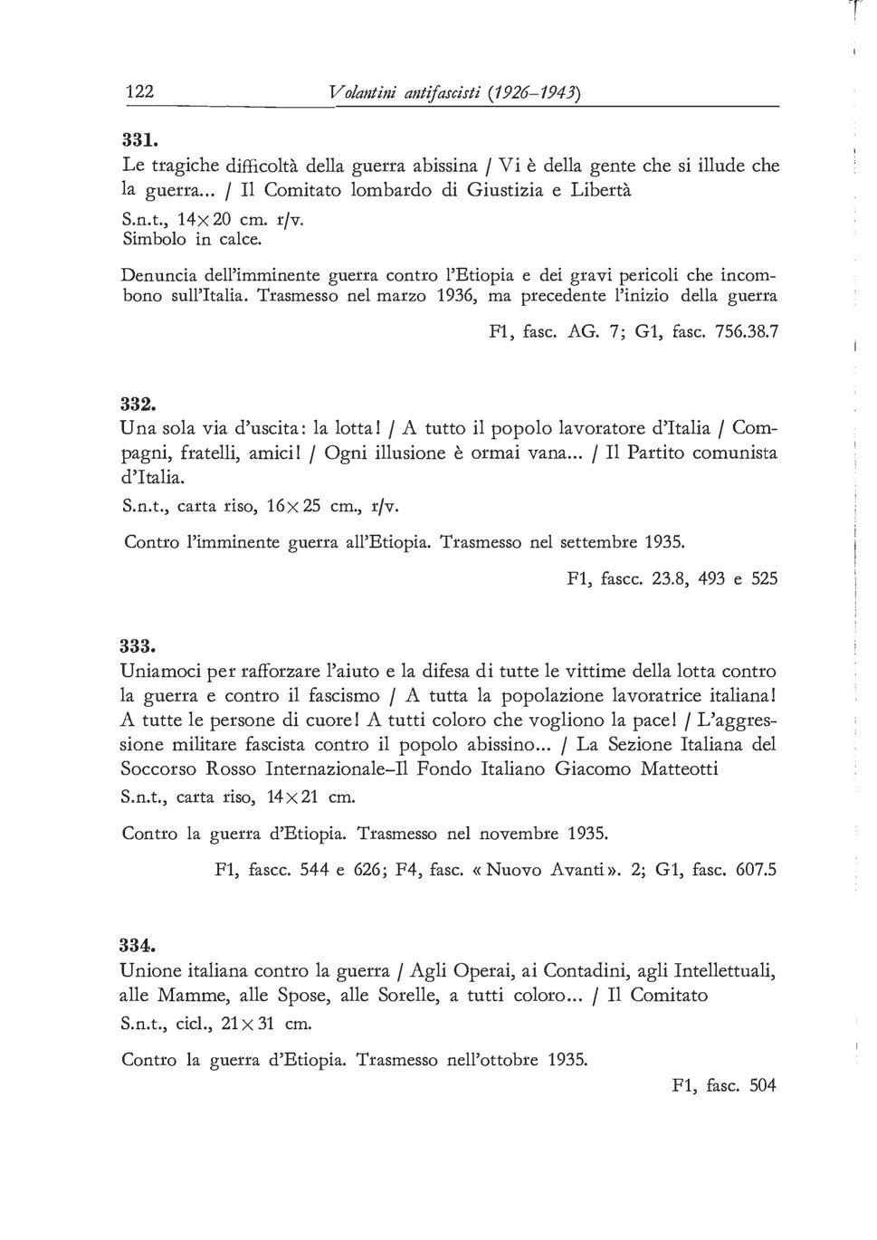 Voli di propaganda antifascista, 95, 110, 113, 148, 225, 540 Volontari nella Guerra italo-etiopica, 384, 390