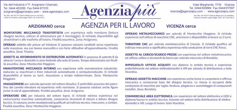• Cerco lavoro come tornitore CNC, montatore meccanico, conceria, autista patente B, operaio generico. Cell. 3382571872 oppure 3807913000.