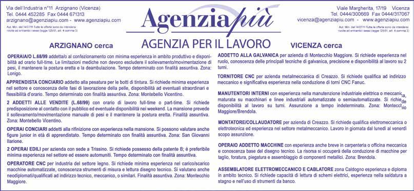 • Siamo un gruppo di amiche occupate ad intermittenza zona Montecchio Maggiore, Brendola, Altavilla e limitrofi. Cerchiamo lavoro offrendo aiuto alle persone come andare dal medico, fare una visita medica in ospedale, fare la