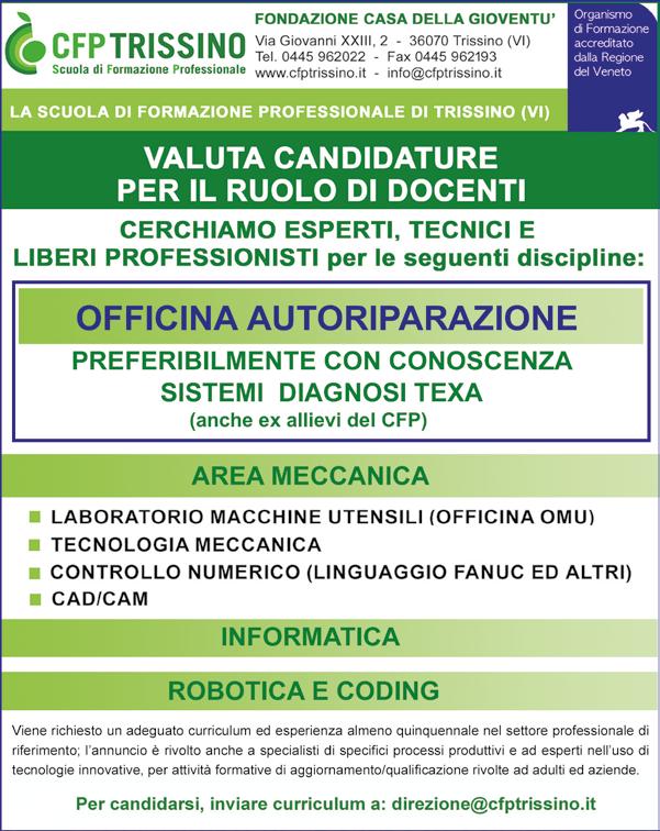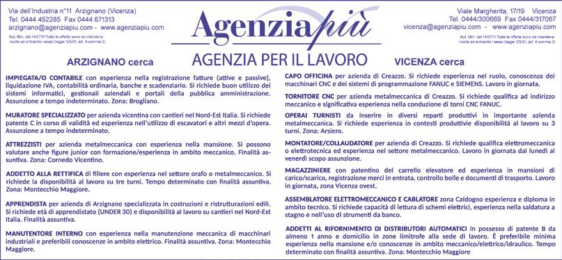 • Cercasi operatore macchine utensili CNC con esperienza e attrezzista con o senza esperienza, zona Zermeghedo (VI). Tel. 0444685873.