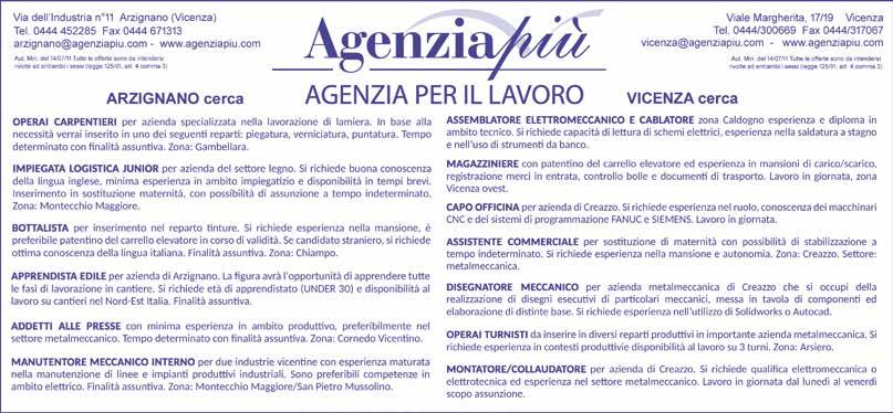 • Ditta artigiana di Trissino, settore installazione impianti idraulici industriali e civili, cerca operai per ampliamento proprio organico. Inviare proprio CV a: info @gentilinegidio.it.