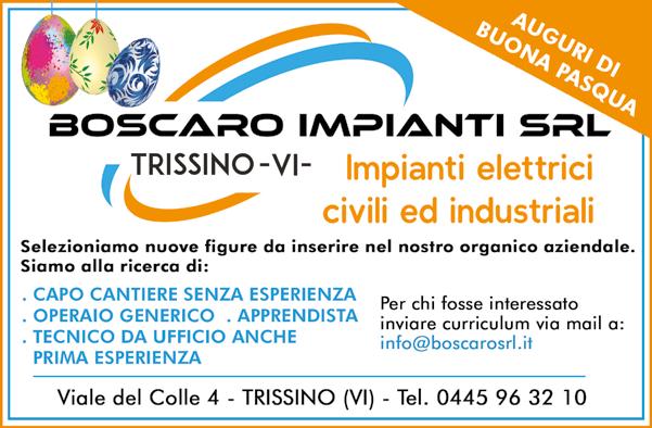 • Selezioniamo nuove figure da inserire nel nostro organico aziendale. Siamo alla ricerca di: Tecnico D’Ufficio, Capo Cantiere con esperienza, Operaio Qualificato, Apprendista Elettricista. Per chi fosse interessato inviare curriculum via mail a: info@boscarosrl.it.