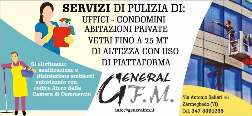 • Impresa di pulizie cerca una signora automunita per pulizie tra Arzignano e Montebello. Per qualsiasi informazione lasciare un messaggio WhatsApp al 3770458861, sarete richiamati.