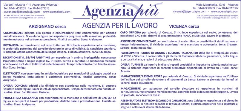 • Azienda metalmeccanica specializzata nella fornitura di scaffalature e sistemi di stoccaggio, è alla ricerca di PROFILATORI per la sede di Montecchio Maggiore (VI). È richiesta una buona capacità di lettura del disegno tecnico e un’eccellente manualità, accompagnata da precisione e affidabilità. È inoltre necessaria una buona conoscenza della lingua italiana. Possibilità di usufruire della men-