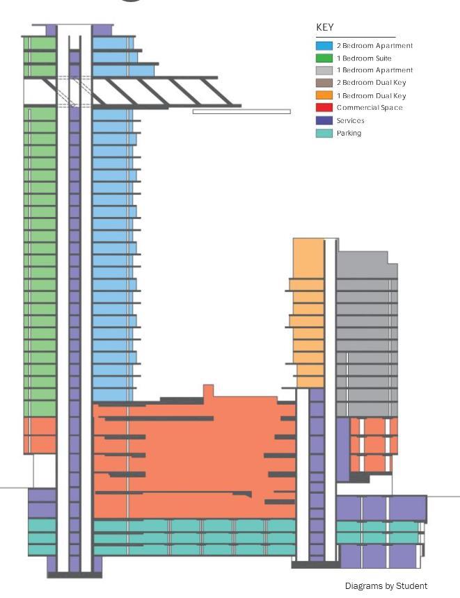 • Residential Zone: East and West Towers with luxury apartments and private amenities.