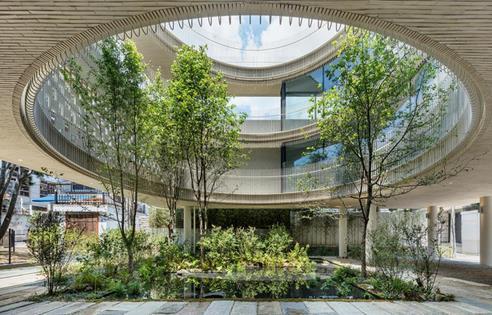 • Nature Integration: Building "envelops" inhabitants in nature, blending urban and natural environments.