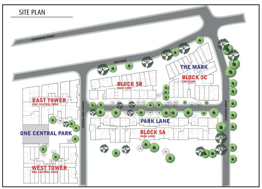 • Retail Zone: Central Park Mall with shops, cafes, restaurants, and essential services.