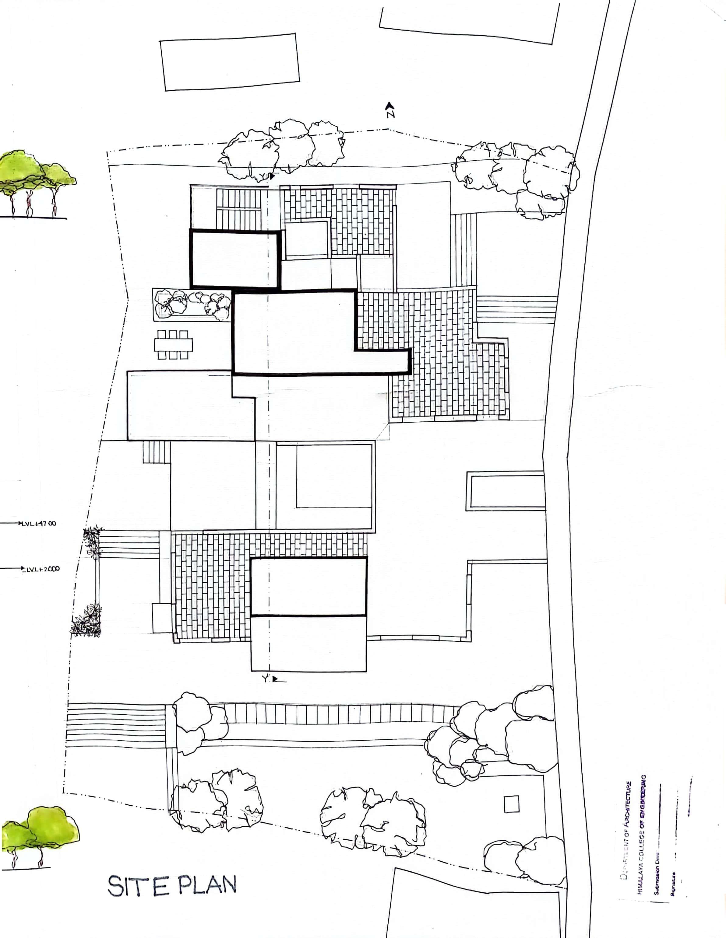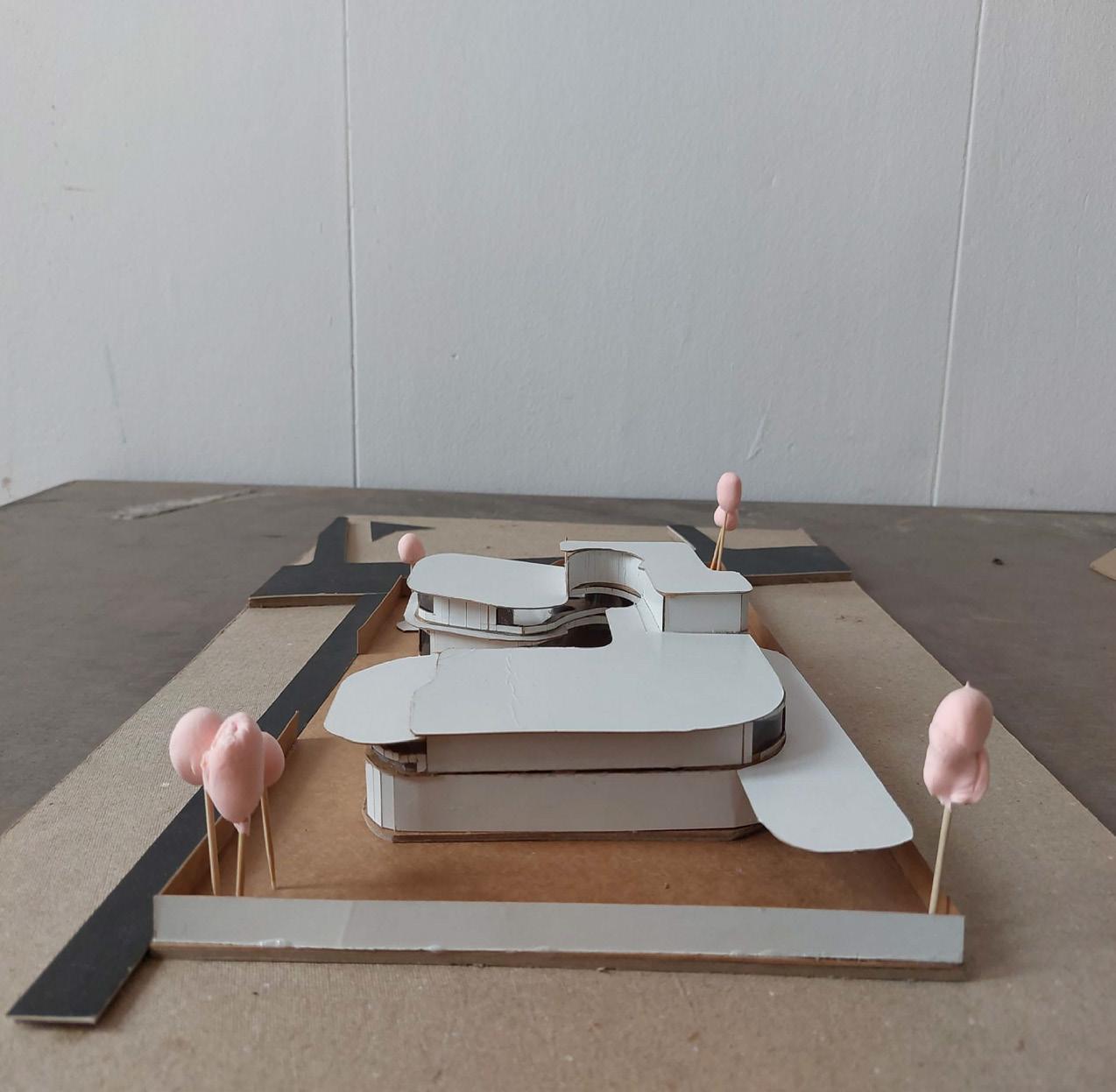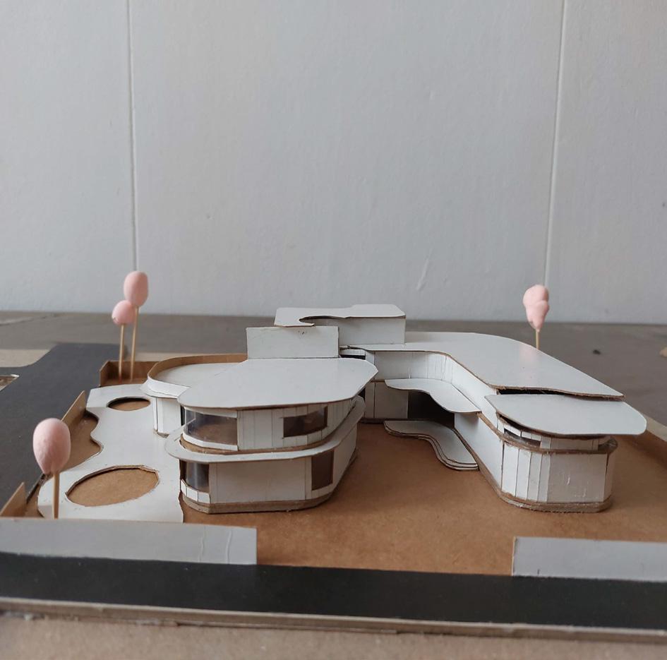 the design started with a multi level approach because i wanted to leave an option of future expansion within the site. it progressed on to utilze the natural angles of the site to maximise visual engagement which introduced issues like negative corners, to adrress that, i introduced curves in all the corners which seconorily guided the rest of my form.