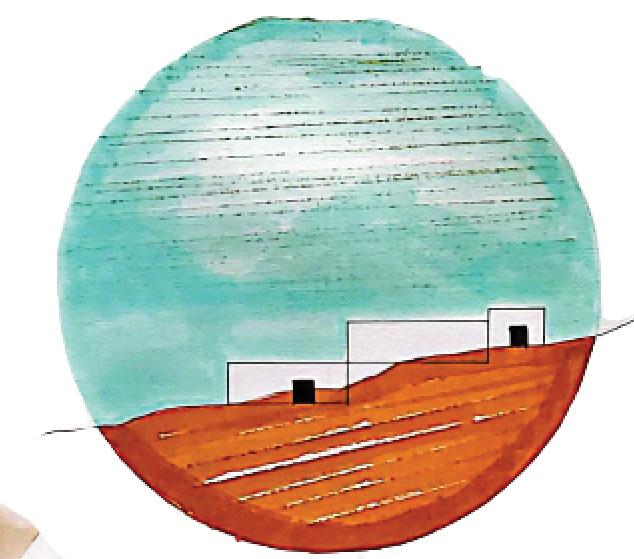the raw material explored in the design majorly include rammed earth and bamboo. based on a thorough study of their spans, strenth and flexibilities of operation, the technicalities of the design’s structure and placements have been worked out.