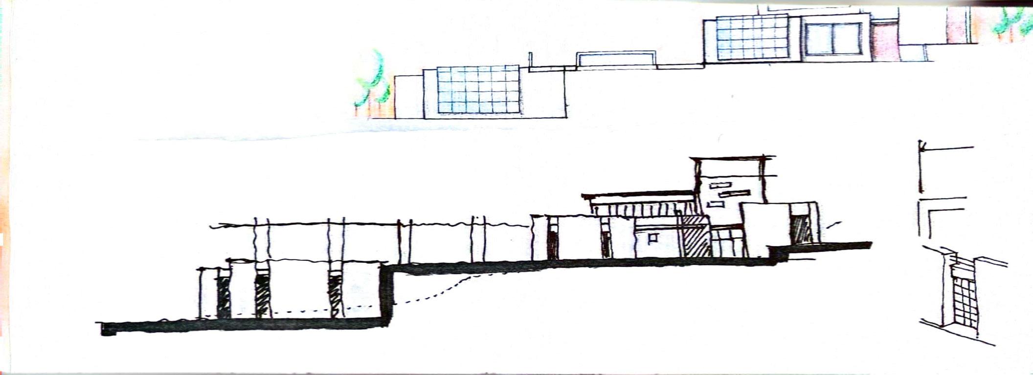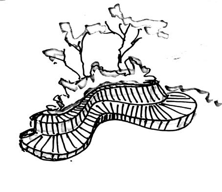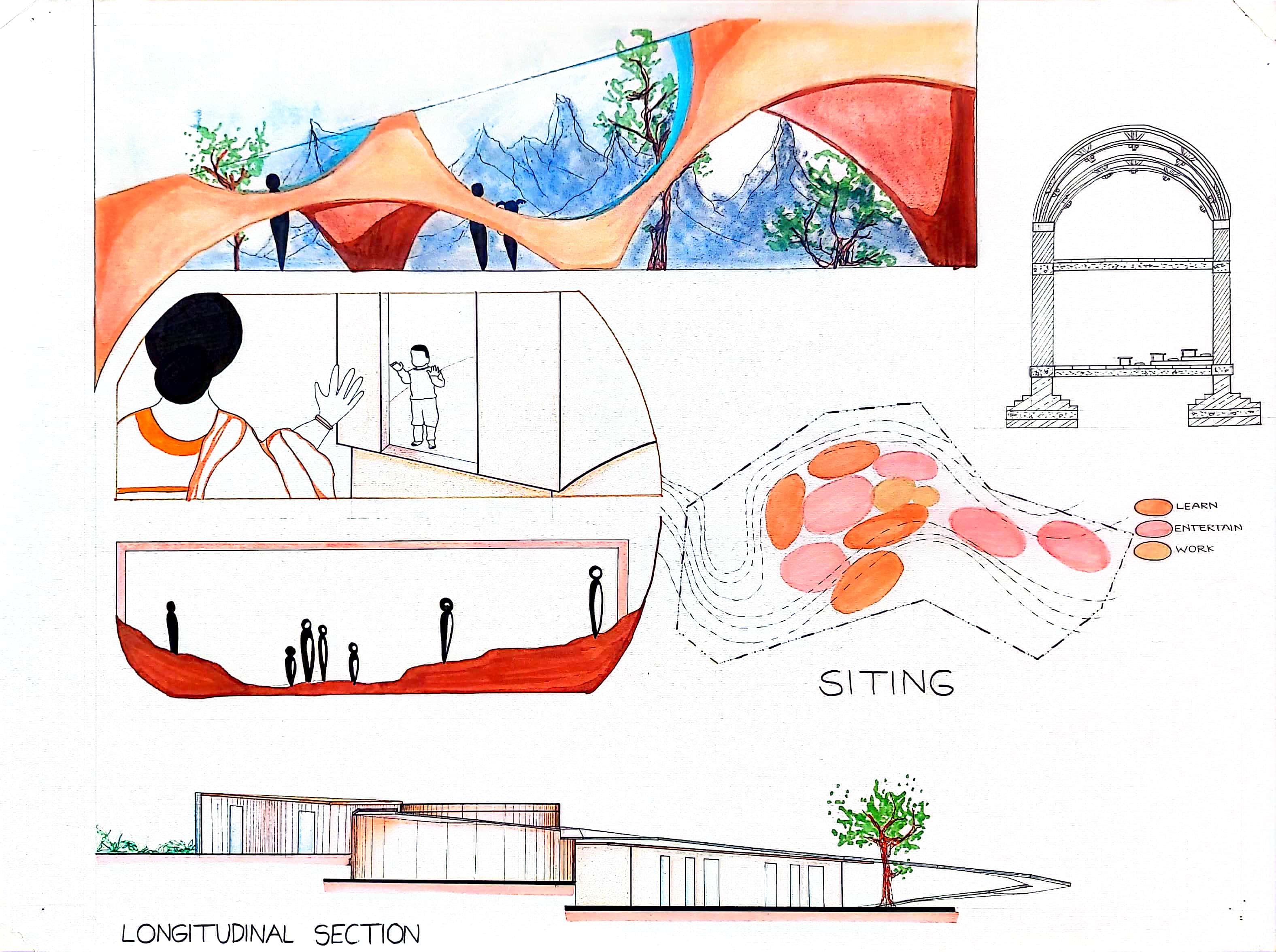 based on a significantly contoured site, i utilised the natural terrains of the site to my advantage to provide highs and lows in the levels of my school, all connected by one common ramp which carries an essence similar to a roller coster ride, based on the entirety of which, i’ve named this design of school “YATRA” .