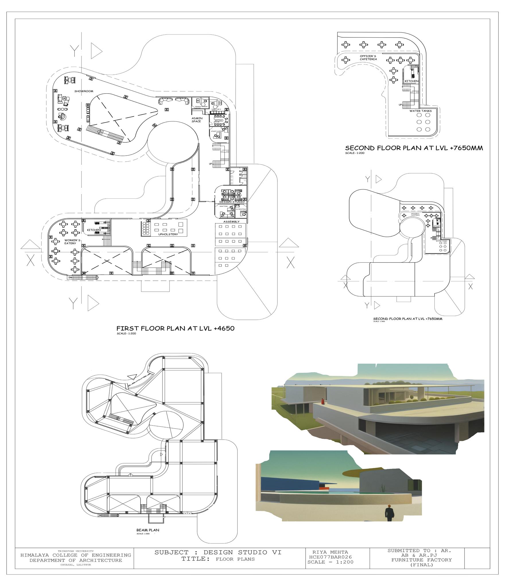 studying the functioning patterns and the legal and physical allowances by the asiigned site, i have motivated my design keeping in mind the efficiency of a visually engaging showroom up on the site front, an administrative space zoned strategically to supervise the ongoings of the production area, and a deligient flow while working in the manufacture.