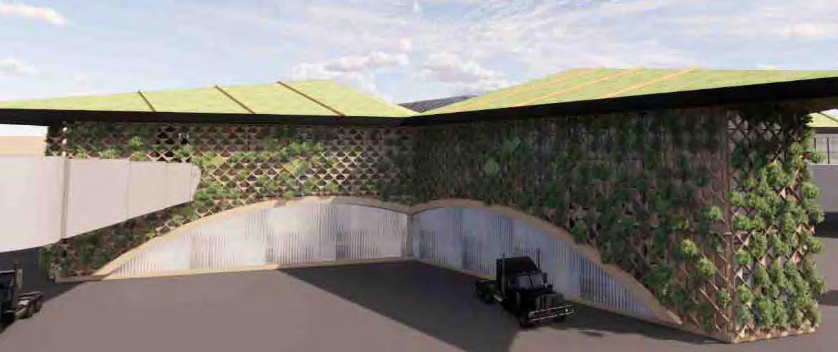 The building incorporates a double-skin facade, utilizing specially designed modules to accommodate plantations. These modules are constructed from recycled metal, seamlessly joined together to form a panel. The panel is strategically positioned in a diamond shape, each unit measuring 450mm x 450mm. Notably, it is closed at a height of 260mm, creating a box-like structure intended for holding soil. To facilitate irrigation, pipes are attached to this box, ensuring a systematic watering system for the plants integrated into the facade. This innovative design not only contributes to sustainable architecture but also enhances the aesthetic appeal of the building.