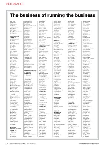 Malcolm Dewar Jeff DePietro Wayne Duerfeldt Frank Dumas Timothy Ellis Pascal Ferron Thomas Fleming Robert P. Flicker (alternate) Mike Fraley, vicechairman Clark Frederick Robert Fritts Mike Gathman Ray Goodearl Robert G. Gruenstern chairman Rick Hallock Terry Hartman (alternate) Daniel M. Henke Mark Herrema Jeff Hires Gerd Hoogestraat Greg Humphrey Charles Hwang Richard (Rick) T. Johnson John Kim James K. Klang (non-BCI member) Davis Knauer Paul Korinek Mike Kuznetsov Joe Liedhegner Doreen Lucht Achim Lulsdorf Bob Malley Sebastian Mathes John McMillion Tim McNally John Miller Todd Milner Boris Monahov Antonio Muñoz Jaime Navarrete Philip A. Noznesky Mike O’Malley Richard W. Pekala Shawn Peng R. David Prengaman, (alternate) Nawaz Qureshi Daryll Rardon Greg Reich David Rice (alternate) Dave Rittenhouse Ronald Rizzo Joe Semens Dwayne Shumate Kevin Smith (alternate) John Sowder Brian Stanhaus Spencer R. Stock Steve Stoll Chasen Stout Ralph Tiegel John Timmons Keith Toll (alternate) Thierry Touzeau Mike Troy (alternate) Stephen L. Vechy Fred Wehmeyer John Wertz Philippe Westreich Kevin Whear Tony Wilson Roger Winslow Alan Wirsul Jeff Zagrodnik