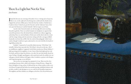 ThehousesofMellonandherhusbandPaulhavebecome iconsinthe eldofinteriordecoration, lledwith ne antiques,blue-chipworksofart(aVanGoghleftunframed andproppedonamantel),personalmementos,andexquisite objetsd’art,alldisplayedinMellon’sinimitablysophisticated yetcharmingway.CampbellwasemployedbyMellonin1970 forsixyears,justaftercollege,todocumentinpaintseveral residencesoftheMellons—presentedhereasagroupforthe rsttime.