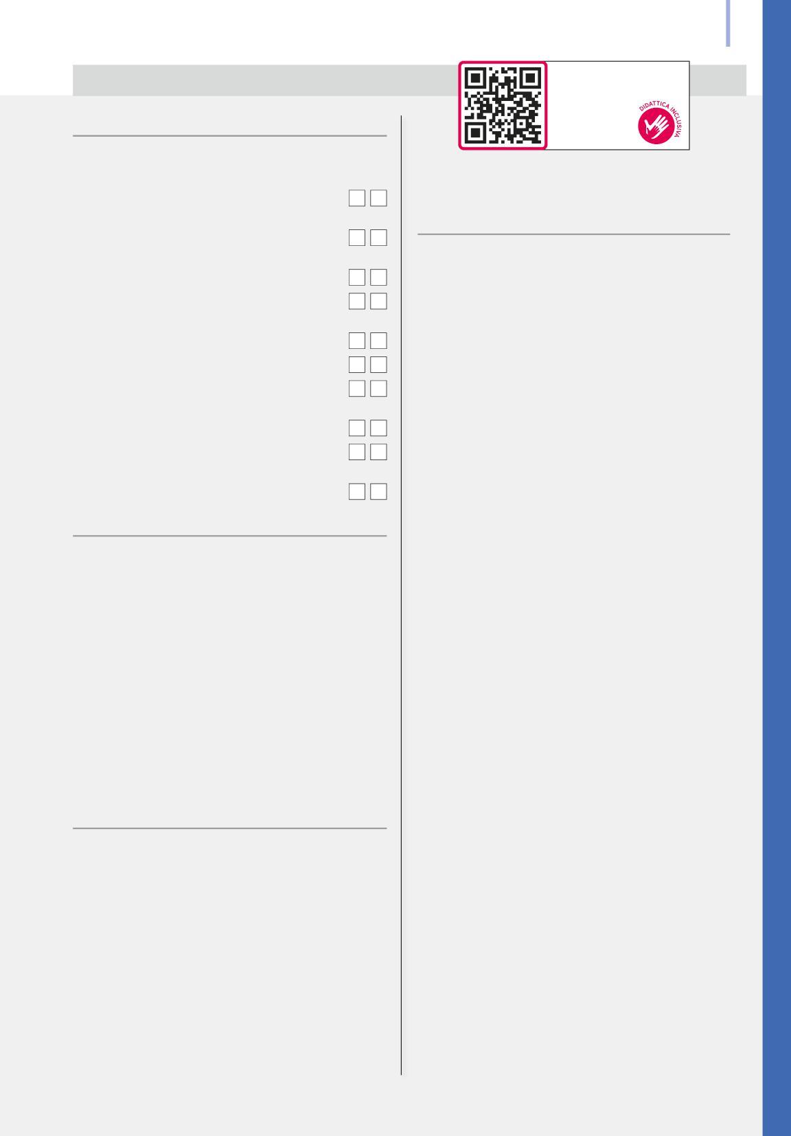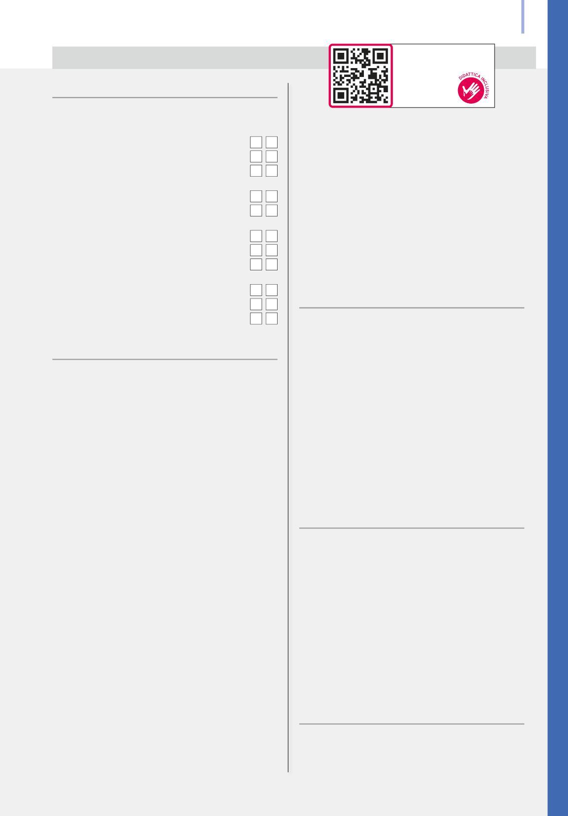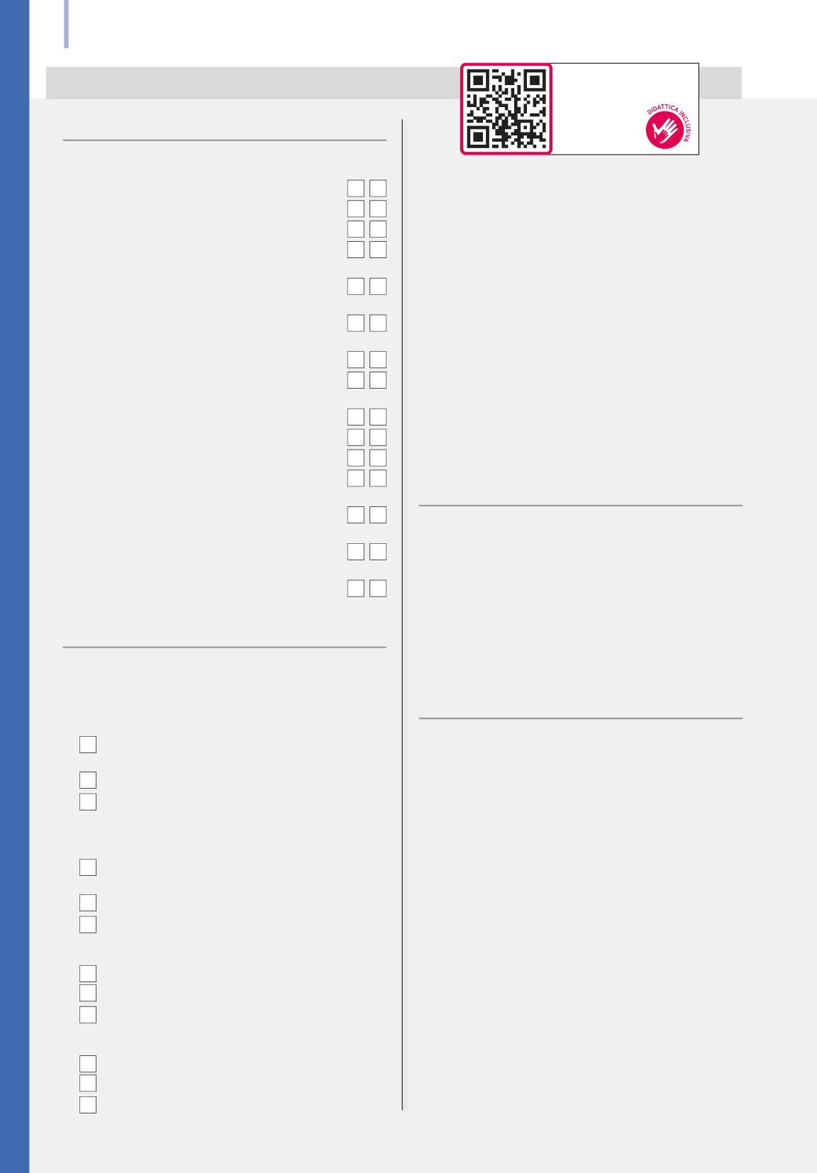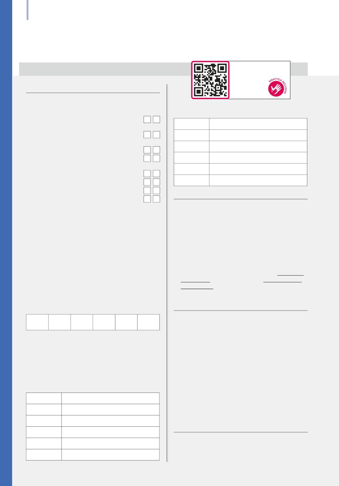 L’Editore è a disposizione degli aventi diritto con i quali non gli è stato possibile comunicare per eventuali involontarie omissioni o inesattezze nella citazione delle fonti dei brani o delle illustrazioni riprodotte nel volume. L’Editore si scusa per i possibili errori di attribuzione e dichiara la propria disponibilità a regolarizzare. I nostri testi sono disponibili in formato accessibile e possono essere richiesti a: Biblioteca per i Ciechi Regina Margherita di Monza (http://www.bibliotecaciechi.it) o Biblioteca digitale dell’Associazione Italiana Dislessia “Giacomo Venuti” (http://www.libroaid.it). Il processo di progettazione, sviluppo, produzione e distribuzione dei testi scolastici dell’Editore è certificato UNI EN ISO 9001.