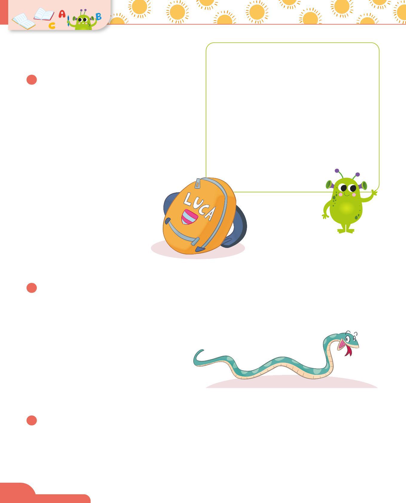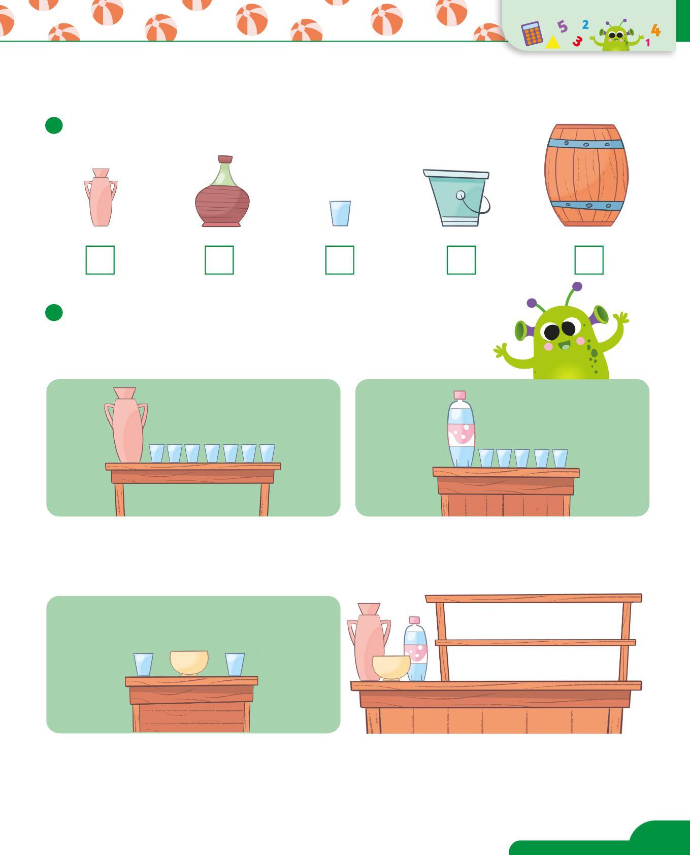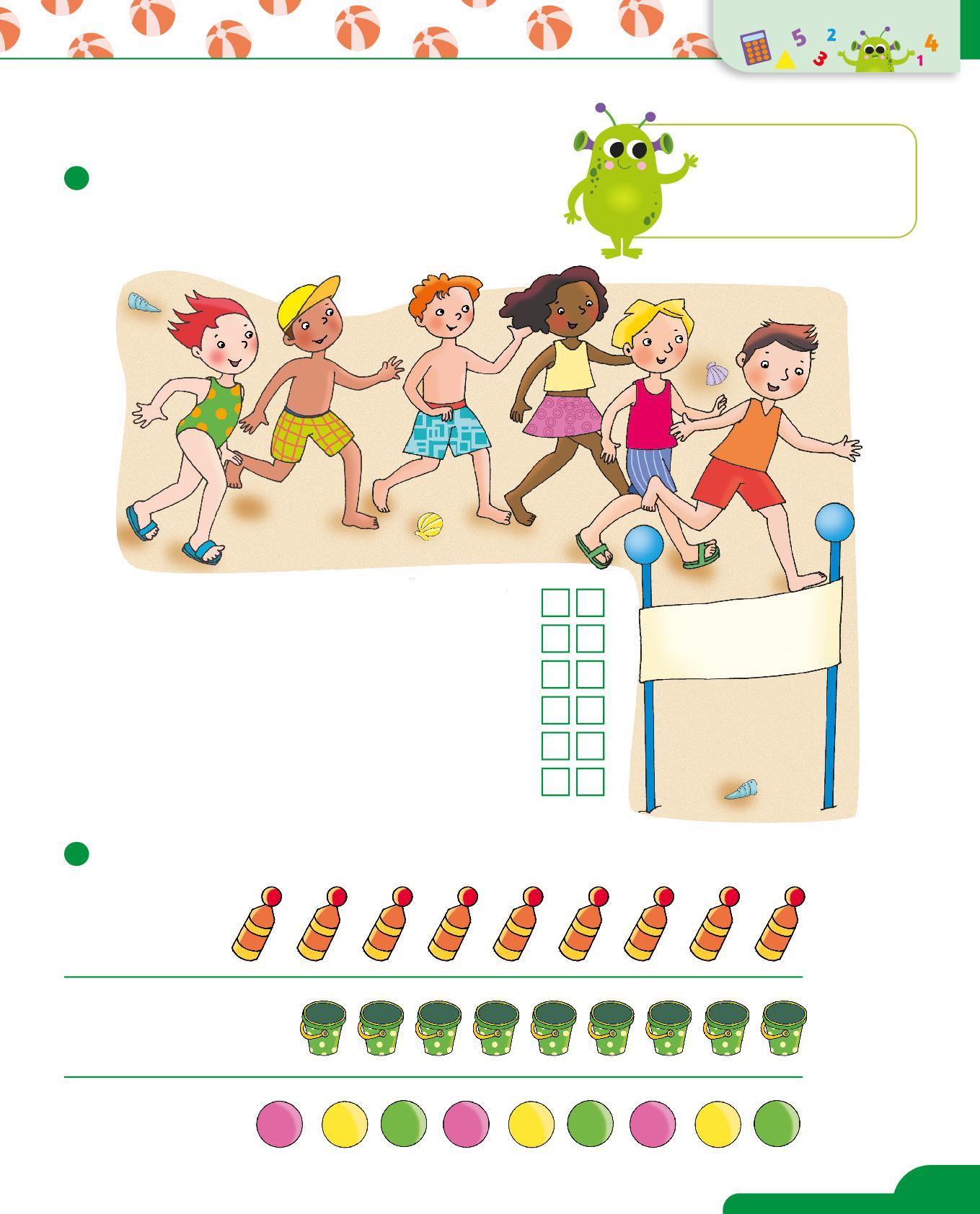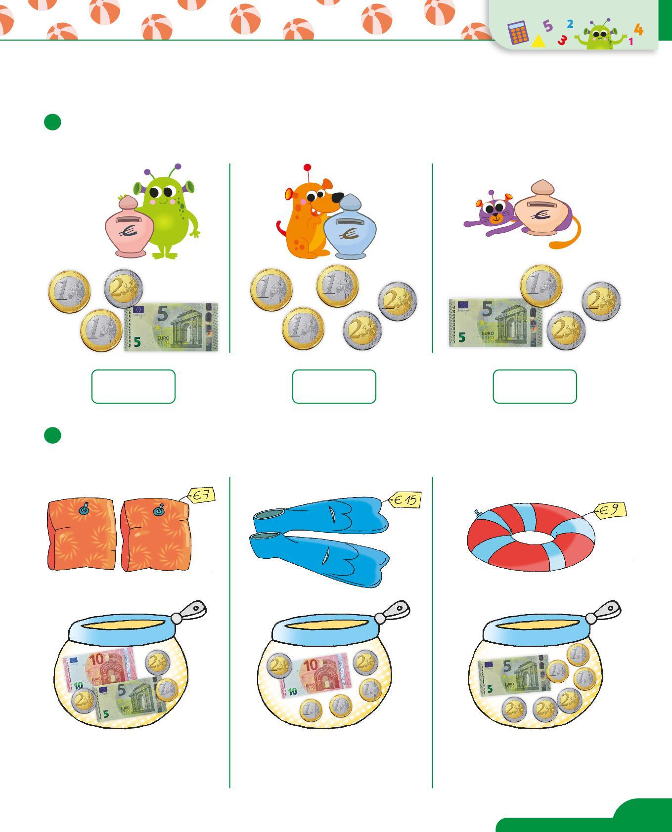 Quante cose ci sono in valigia? 70 Quanti gruppi! 71 Da 0 a 10 72 Precedente e successivo 73 Maggiore, minore, uguale 74 Numeri ordinali 75 L’addizione 76 Addizioni con le dita 77 Addizioni sulla linea dei numeri 78 Addizioni nelle barchette 79 Ancora addizioni 80 Gli amici del 10 81 Problemi con l’addizione 82 EDUCAZIONE CIVICA La paura 83 La sottrazione 84 Sottrazioni con le dita 85 Sottrazioni sulla linea dei numeri 86 Sottrazioni nei palloncini 87 Ancora sottrazioni 88 Sottrazioni possibili e impossibili 89 Problemi con le sottrazioni 90 Decine in fondo al mare 92 Confrontare e ordinare 93 Addizioni e sottrazioni fino a 20 94 Operazioni a catena 95 Addizione e sottrazione: operazioni inverse 96 Problemi con addizione o sottrazione 97 EDUCAZIONE CIVICA Parole gentili 98 Alto, basso, lungo, corto 99 La lunghezza e l’altezza 100 La capacità 101 Il peso 102 L’euro 103 EDUCAZIONE CIVICA La spiaggia 104 Destra o sinistra? 106 Fuori o dentro? 107 Occhio alle tabelle! 108 Percorsi 109 Figure artistiche 110 Vero o falso? 111 Che cosa accade? 112 Dove hai trascorso le vacanze? 113