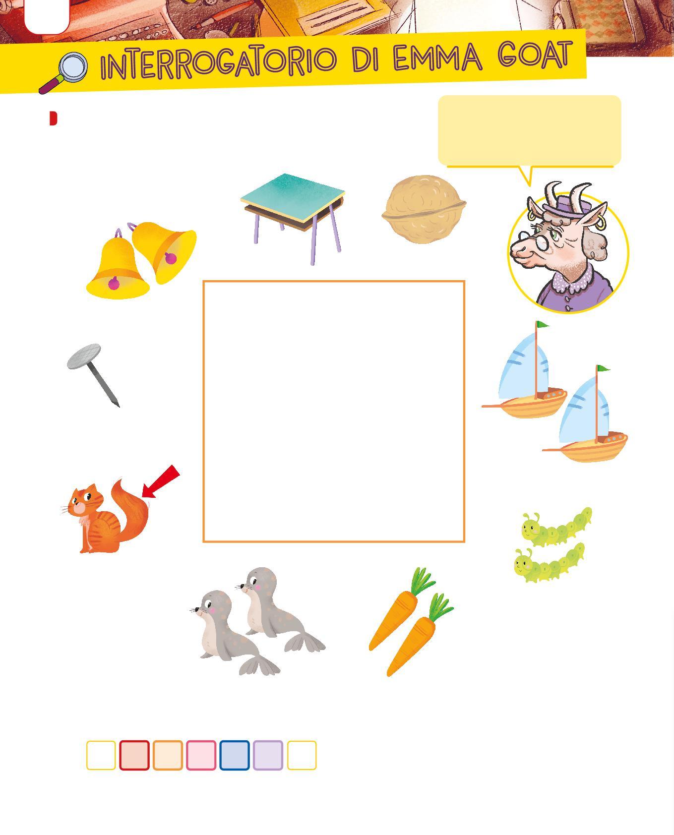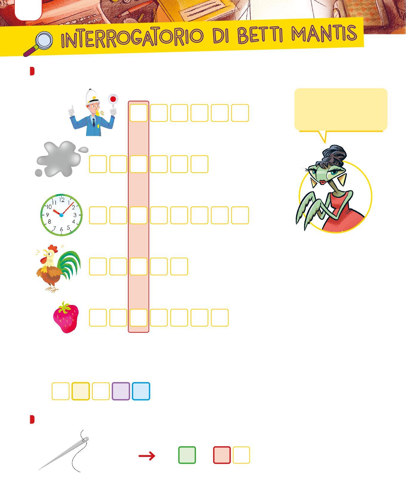 106 LA RICETTA RUBATA 108 Interrogatorio di Ved Panther (conversione fonema-grafema) 110 Interrogatorio di Mia Parrot (lettere ponte) 112 Interrogatorio di Emma Goat (C dura, C dolce) 114 Interrogatorio di Betti Mantis (G dura, G dolce) 116 Interrogatorio di Scott Hamish (sca, sco, scu, sce, sci) 118 Interrogatorio di Oliver Bat (gn, gli, q) 120 Scopri il colpevole