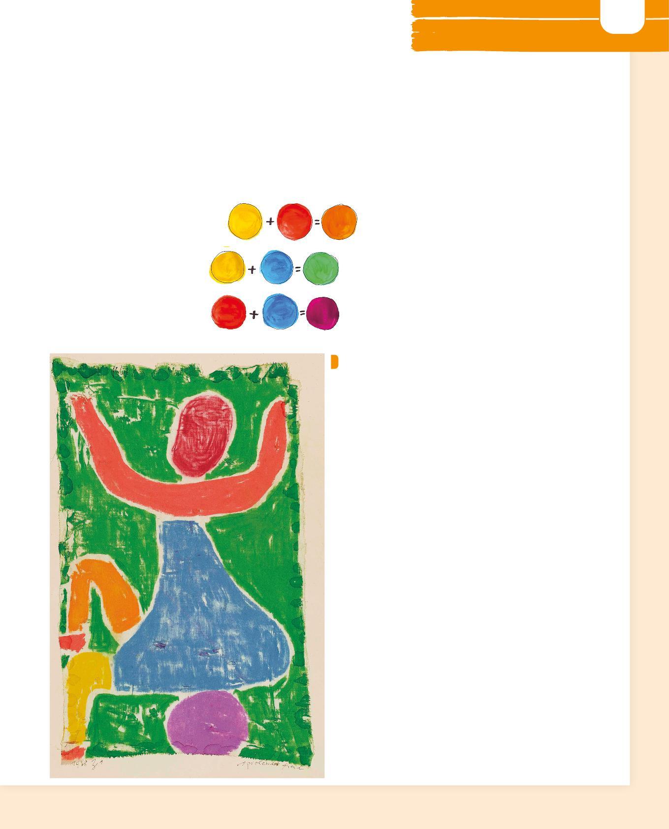 Lavora con questi colori e con la tua fantasia. Osserva l’esempio e inventa anche tu un disegno con i tre colori secondari.