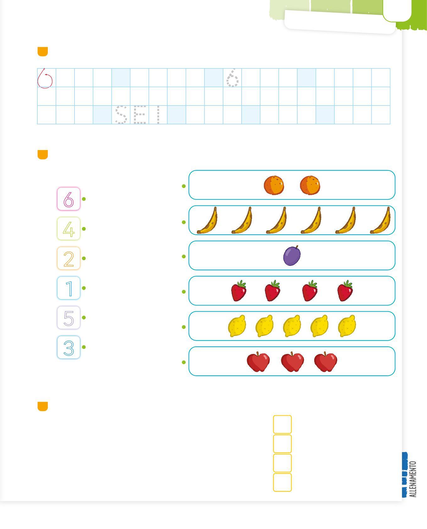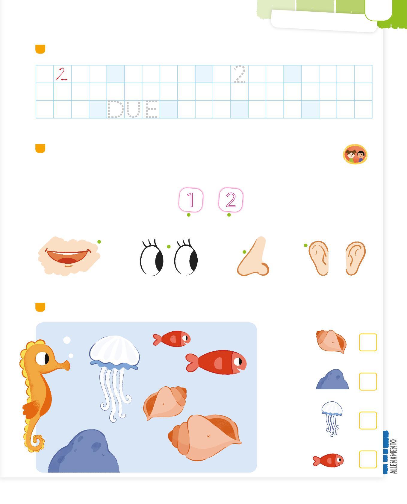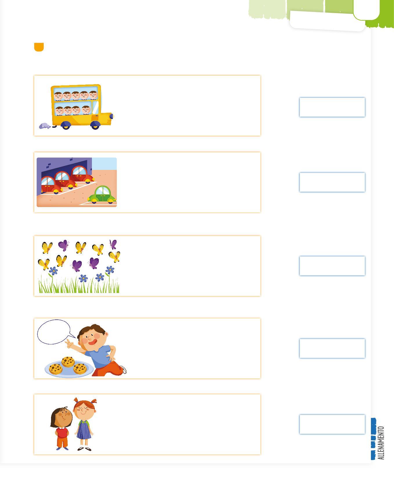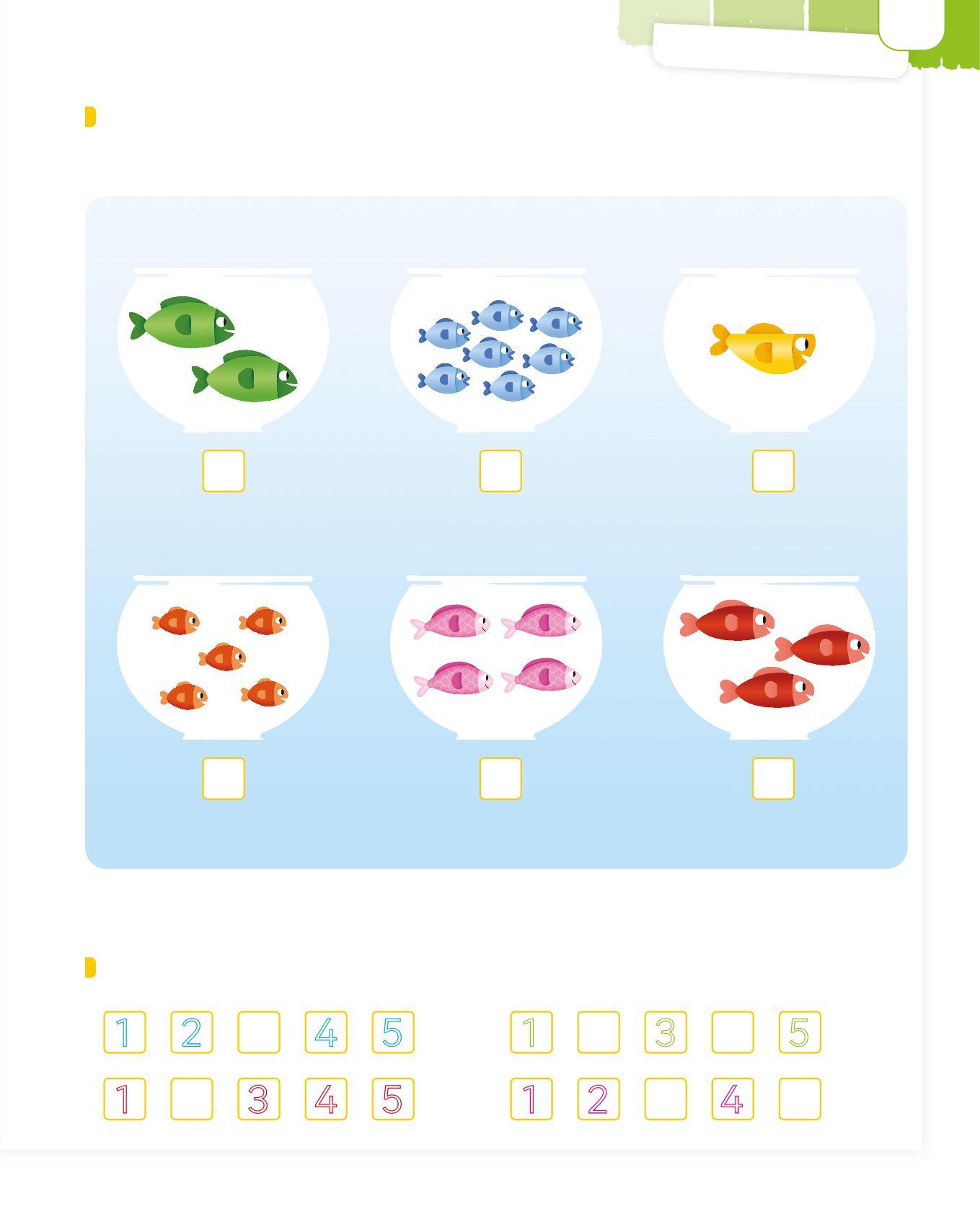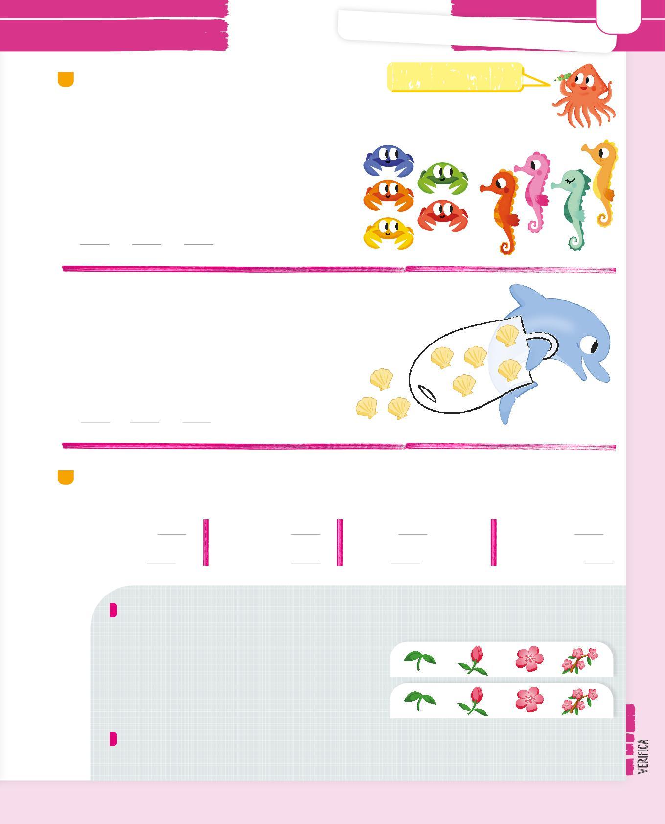 La storia di 1 • 2 • 3 • 4 9 I numeri 1 • 2 • 3 • 4 16 La storia di 5 17 Il numero 5 20 Indovina il numero 21 I numeri fino a 5 24 MONITORAGGIO I numeri fino a 5 26 I numeri fino a 5 28 La storia di 6 • 7 • 8 • 9 29 I numeri 6 • 7 • 8 • 9 35 Indovinate il numero! 36 Maggiore • minore • uguale 37 Precedente • successivo 38 MONITORAGGIO I numeri fino a 9 40 I numeri fino a 9 42 La storia di 0 43 Il numero 0 45 La storia della decina • 10 • 11 • 12 46 La decina e il 10 49 Gioco con la decina 50 I numeri 11 • 12 53 Numeri in codice 54 MONITORAGGIO I numeri fino a 12 56 I numeri fino a 12 58 Cubetti e contatab 59 HO IMPARATO I numeri fino a 12