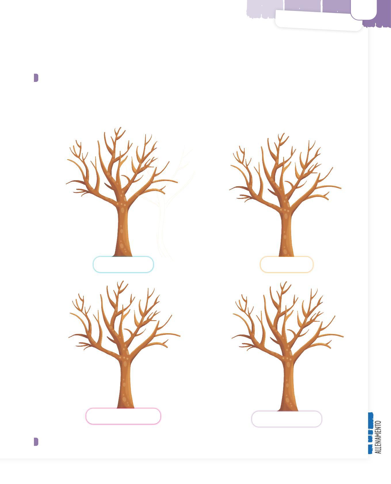 MOLTI ALBERI CAMBIANO IL LORO ASPETTO NEL CORSO DELL’ANNO. COMPLETA I DISEGNI DEGLI ALBERI NELLE VARIE STAGIONI.