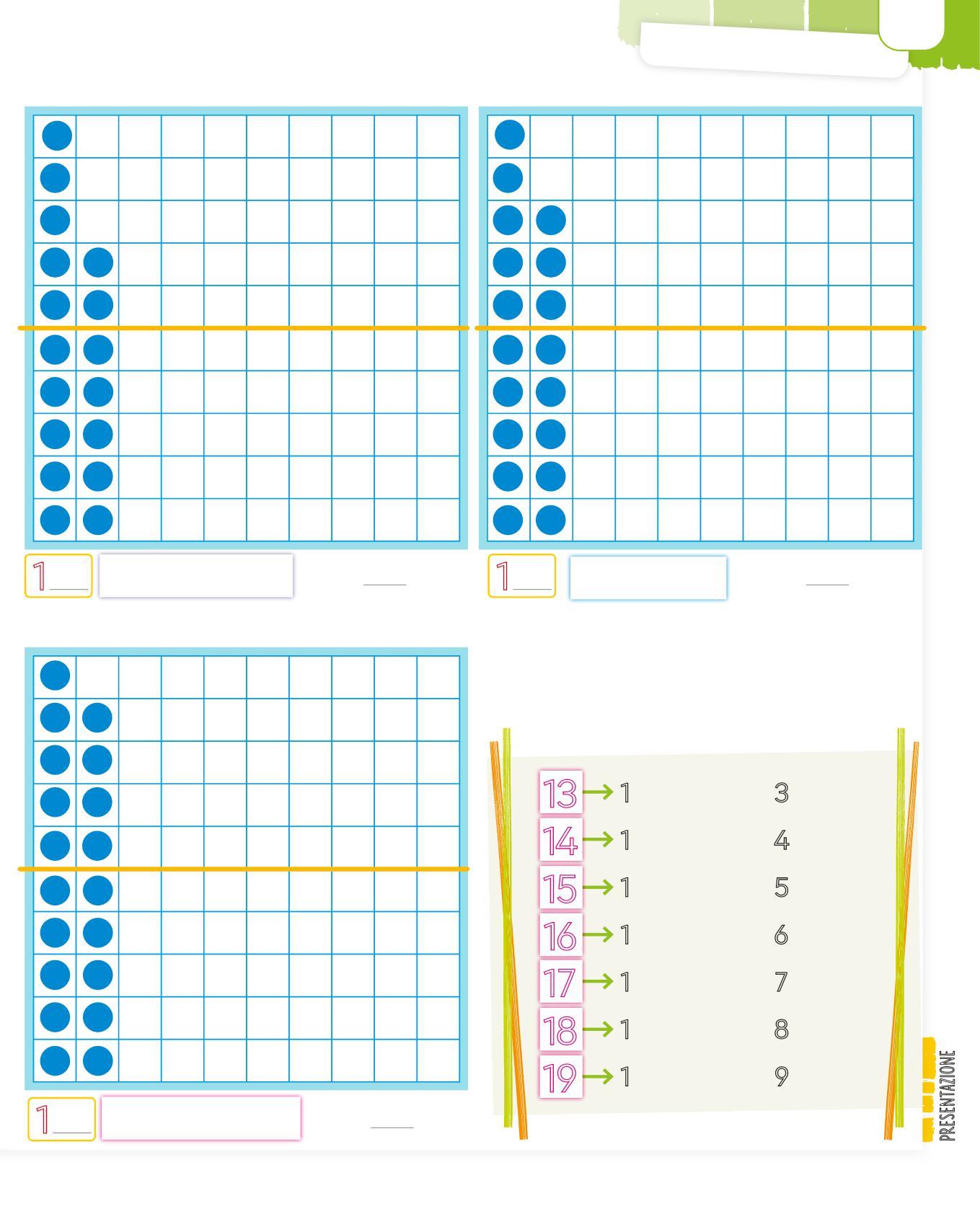 I NUMERI FINO A 20 84 La storia dei numeri fino a 20 86 I numeri da 13 a 19 91 Numeri nascosti 92 MONITORAGGIO I numeri da 13 a 19 94 Il numero 20 96 Addizioni fino a 20 98 Sottrazioni fino a 20 99 MONITORAGGIO I numeri fino a 20 101 I numeri fino a 20 103 HO IMPARATO I numeri fino a 20