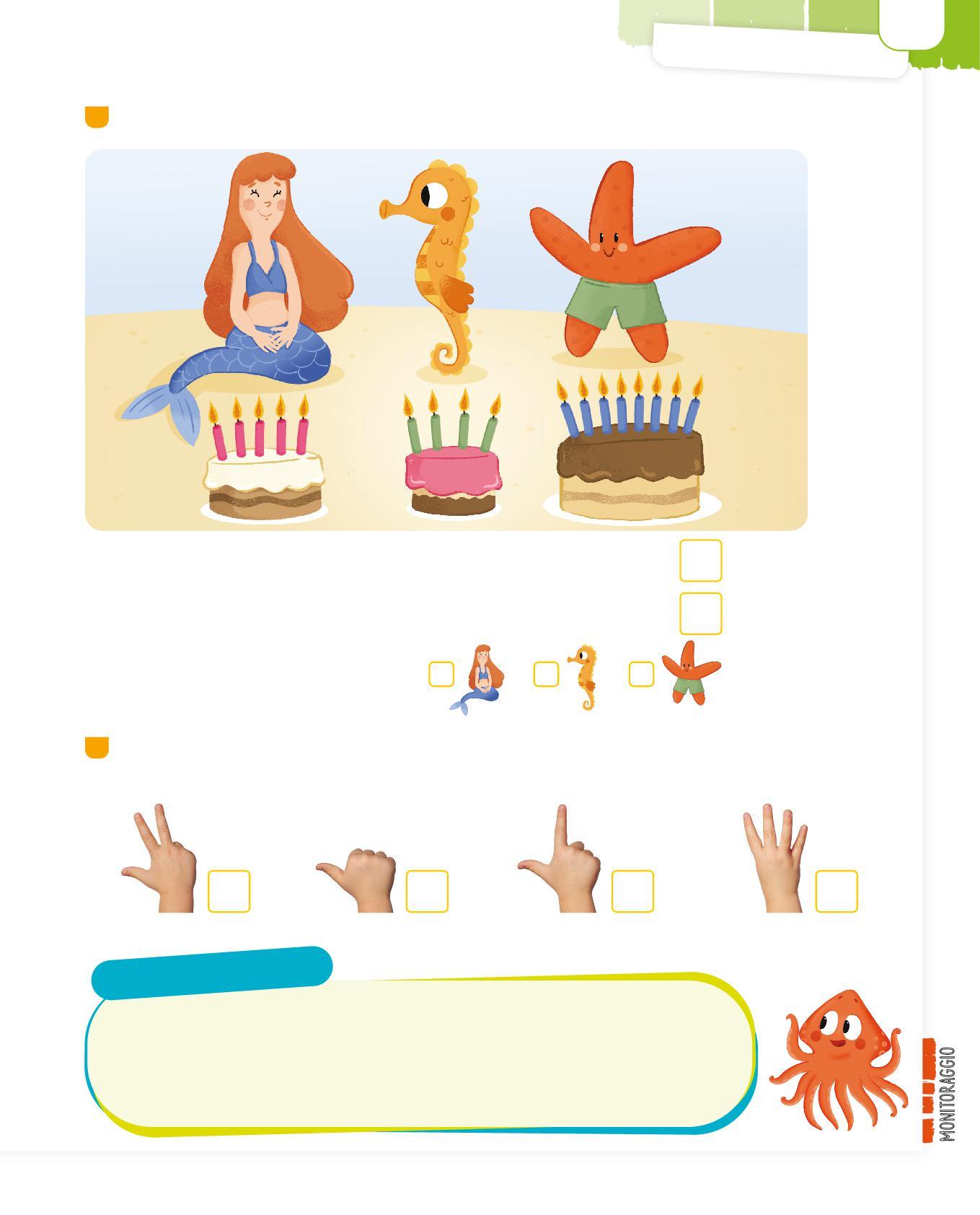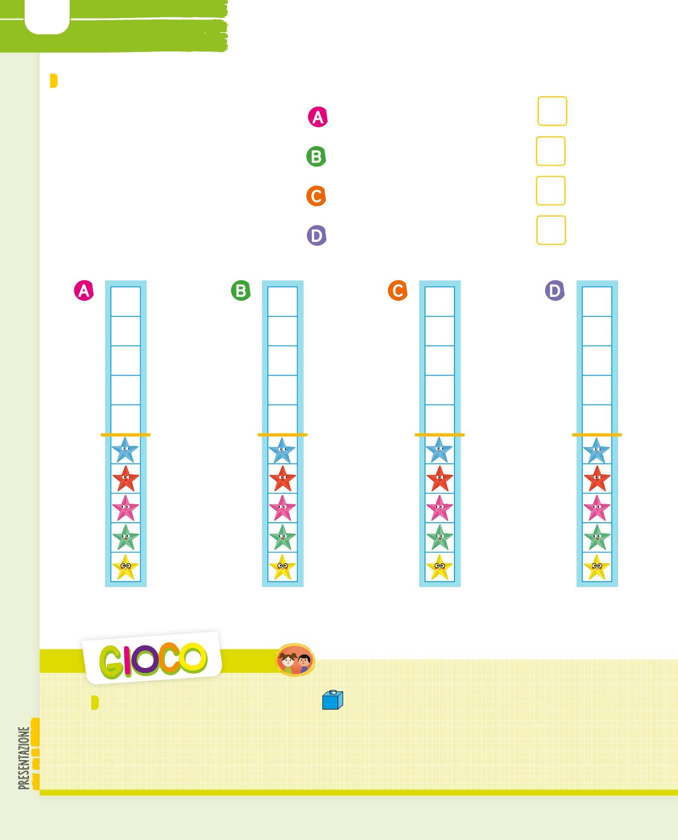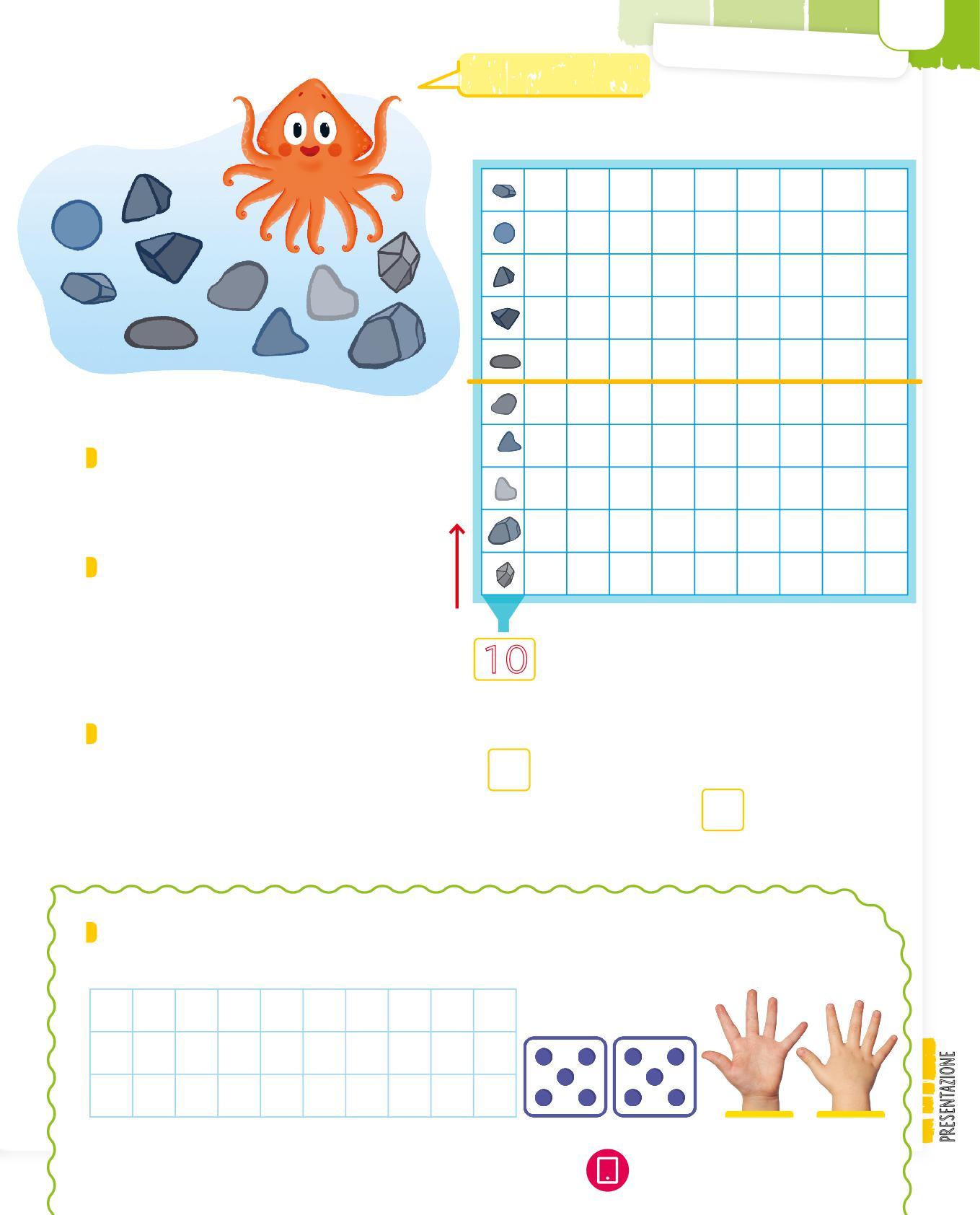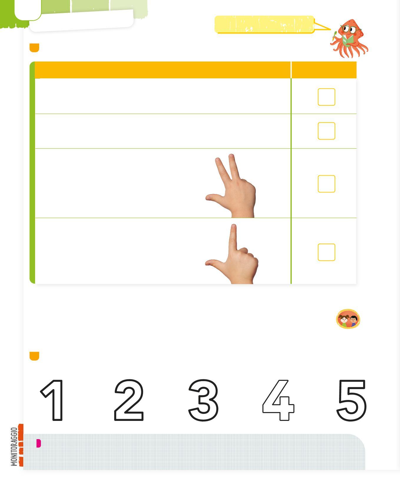 OSSERVA LA COLONNA A LATO: RIESCI A CONTARE TUTTI I QUADRETTI? SE NON SAI ANCORA CONTARE FINO A 10, FATTI AIUTARE DALL’INSEGNANTE O DAL RESTO DELLA CLASSE. QUANTI QUADRETTI CI SONO FINO AL SEGNO ARANCIONE? CE N’È UNO PER OGNI DITO DELLA TUA MANO!